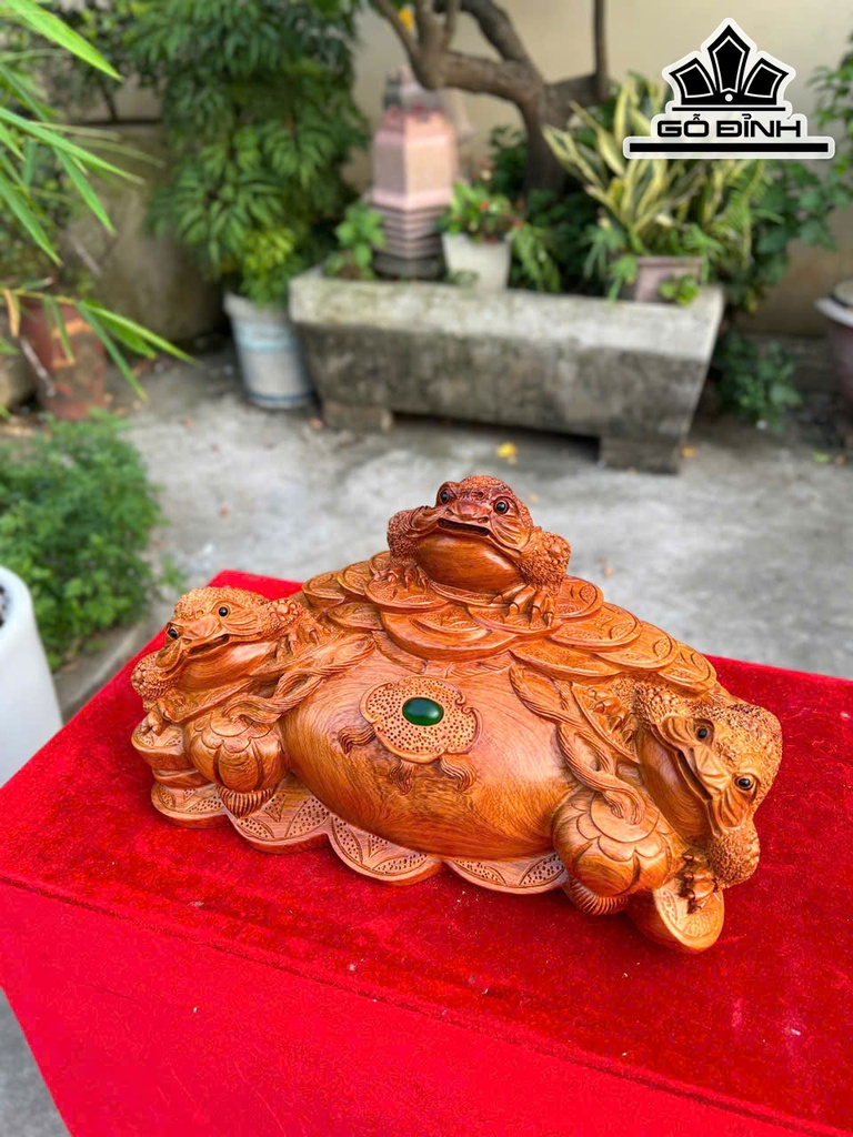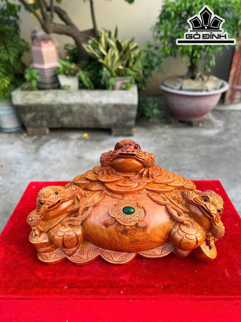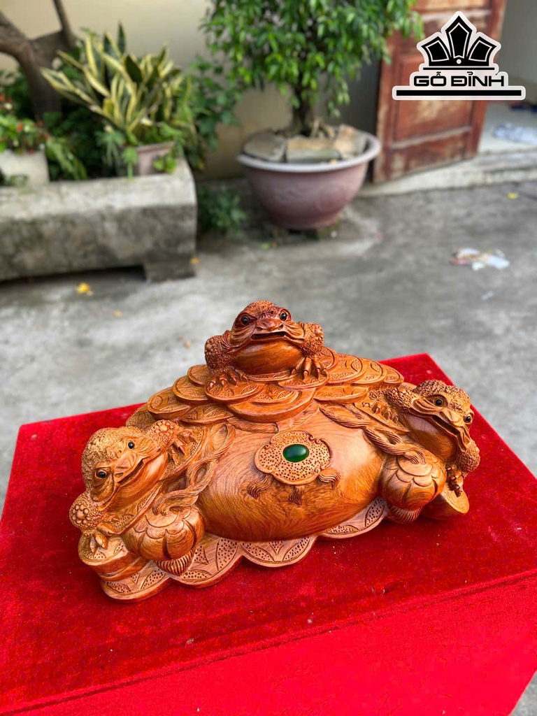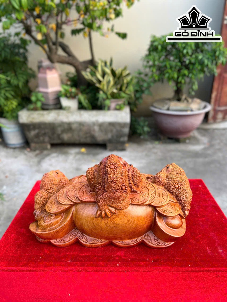 Tượng Tam Cóc Ngậm Tiền Gỗ Hương Cao 23 Ngang 41 Sâu 22 (cm)