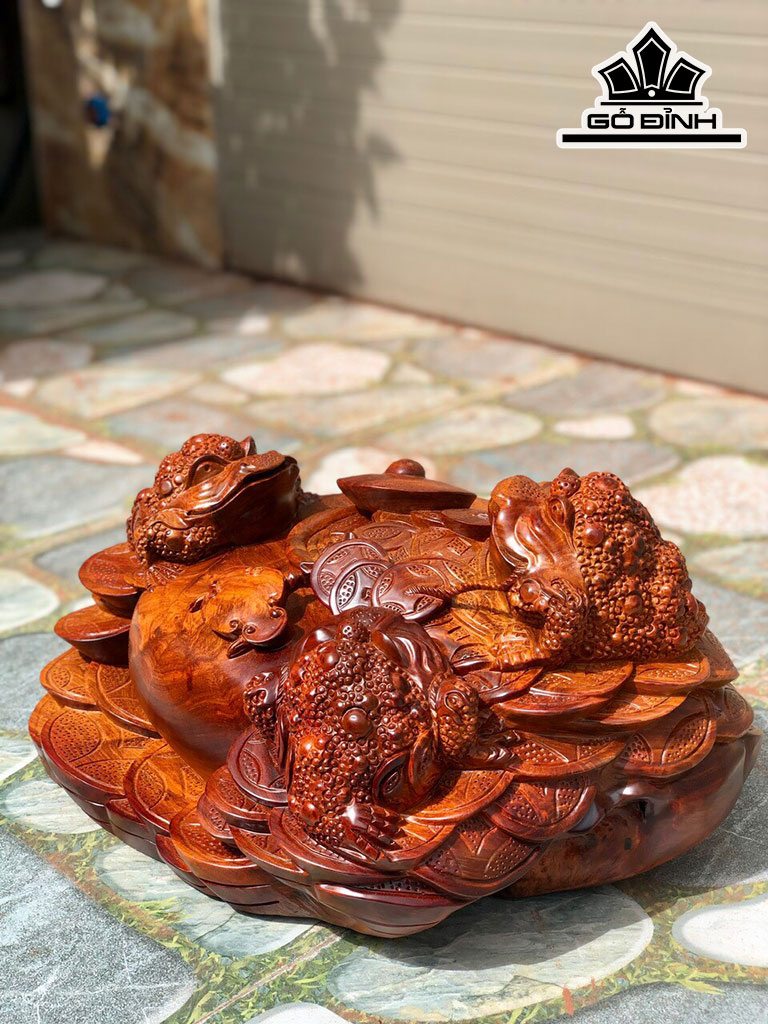 Tượng Tam Cóc Ngậm Tiền Gỗ Hương Cao 24 Ngang 43 Sâu 38 (cm)