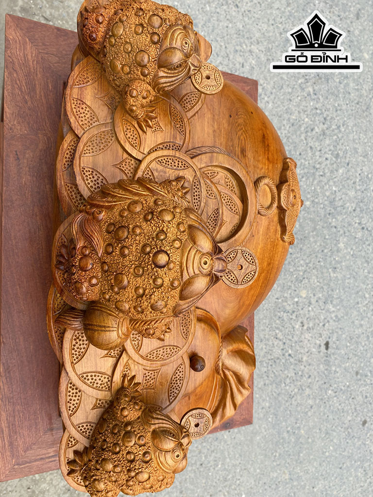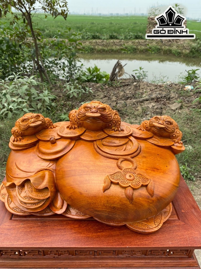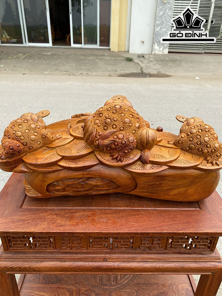 Tượng Tam Cóc Ngậm Tiền Gỗ Hương Cao 26 Ngang 56 Sâu 34 (cm)