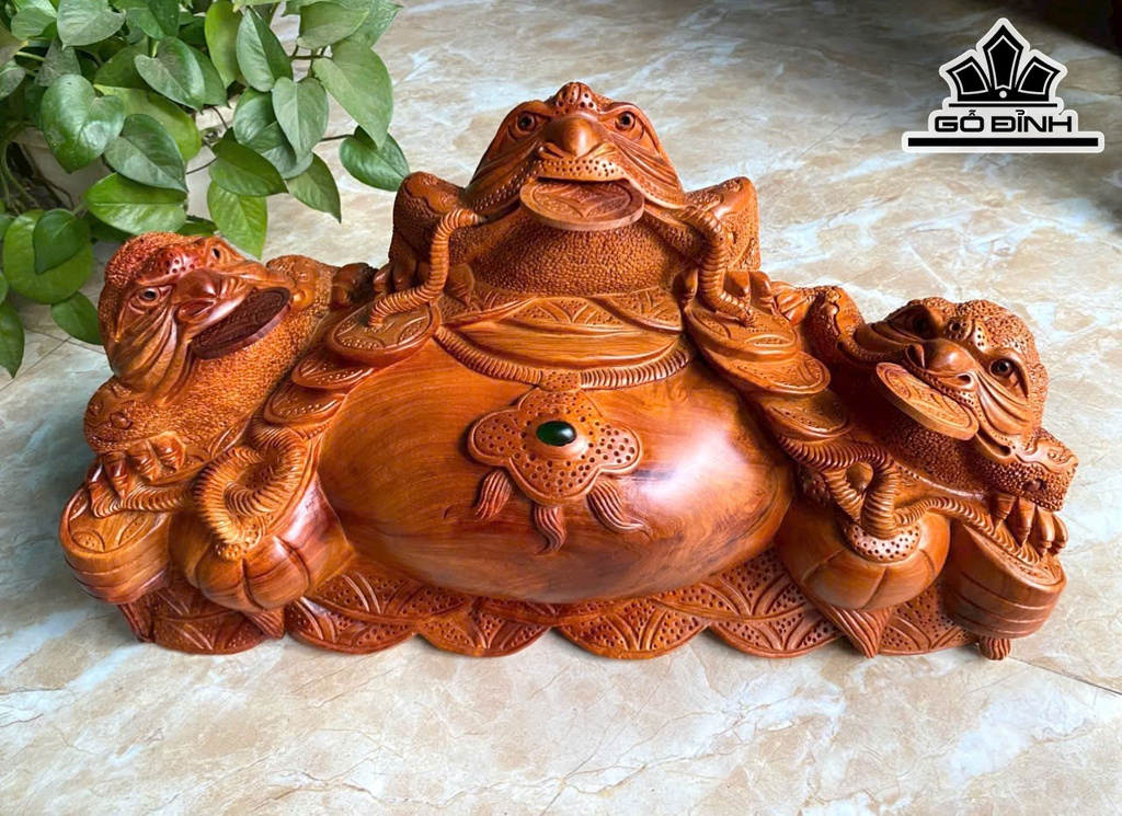 Tượng Tam Cóc Ngậm Tiền Gỗ Hương Cao 28 Ngang 52 Sâu 22 (cm)