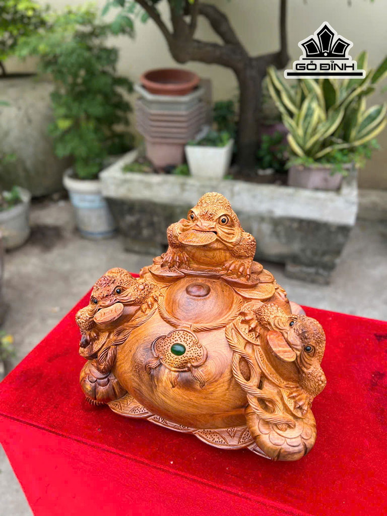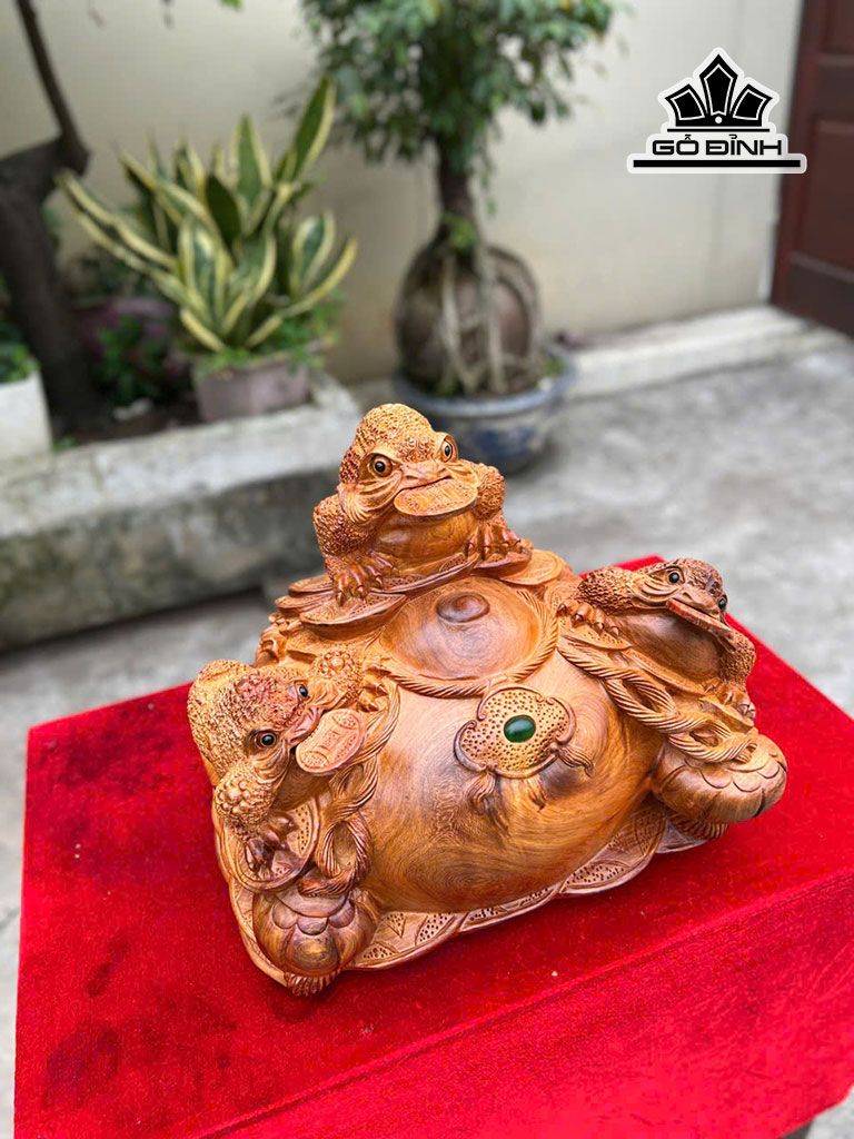 Tượng Tam Cóc Ngậm Tiền Gỗ Hương Cao 30 Ngang 31 Sâu 25 (cm)