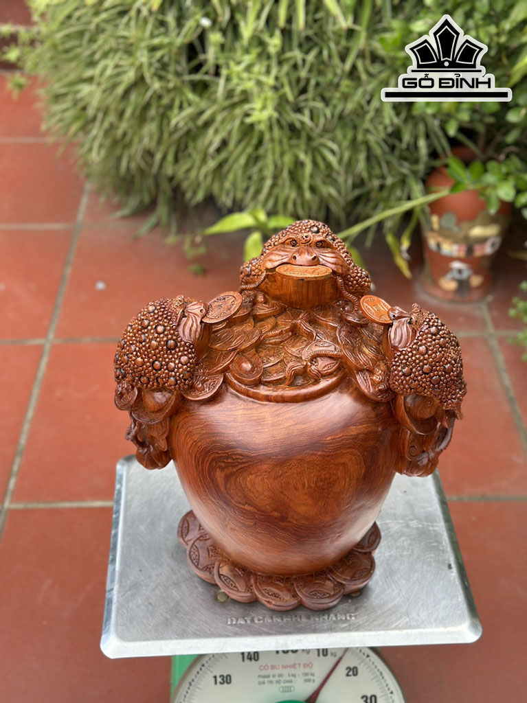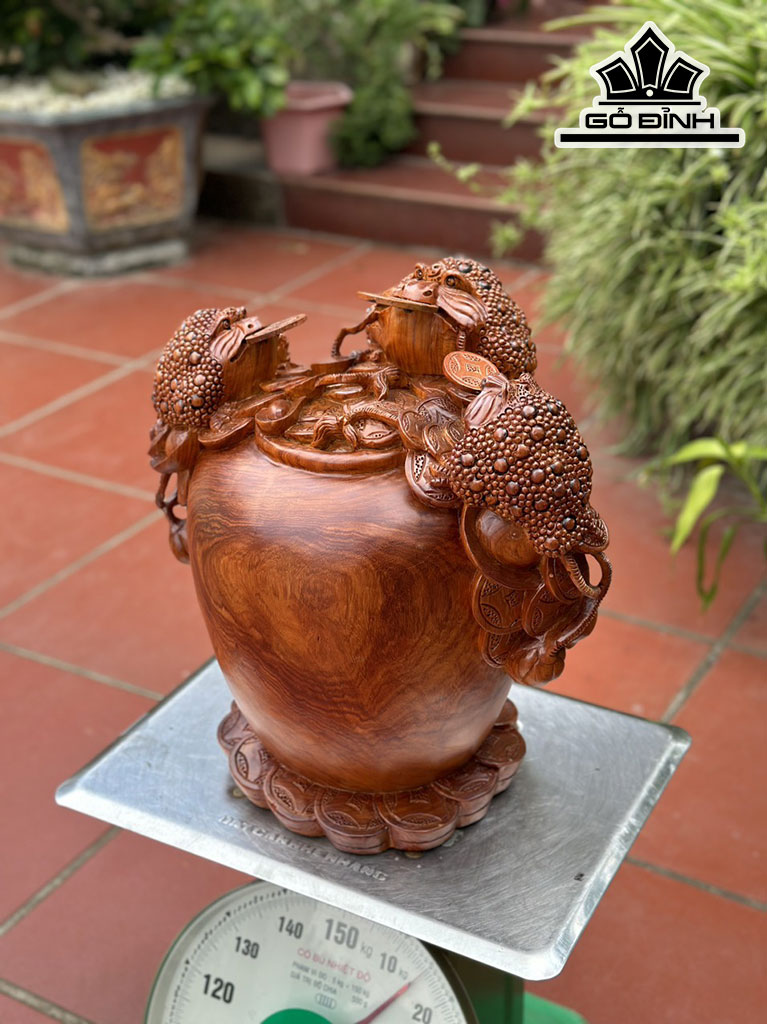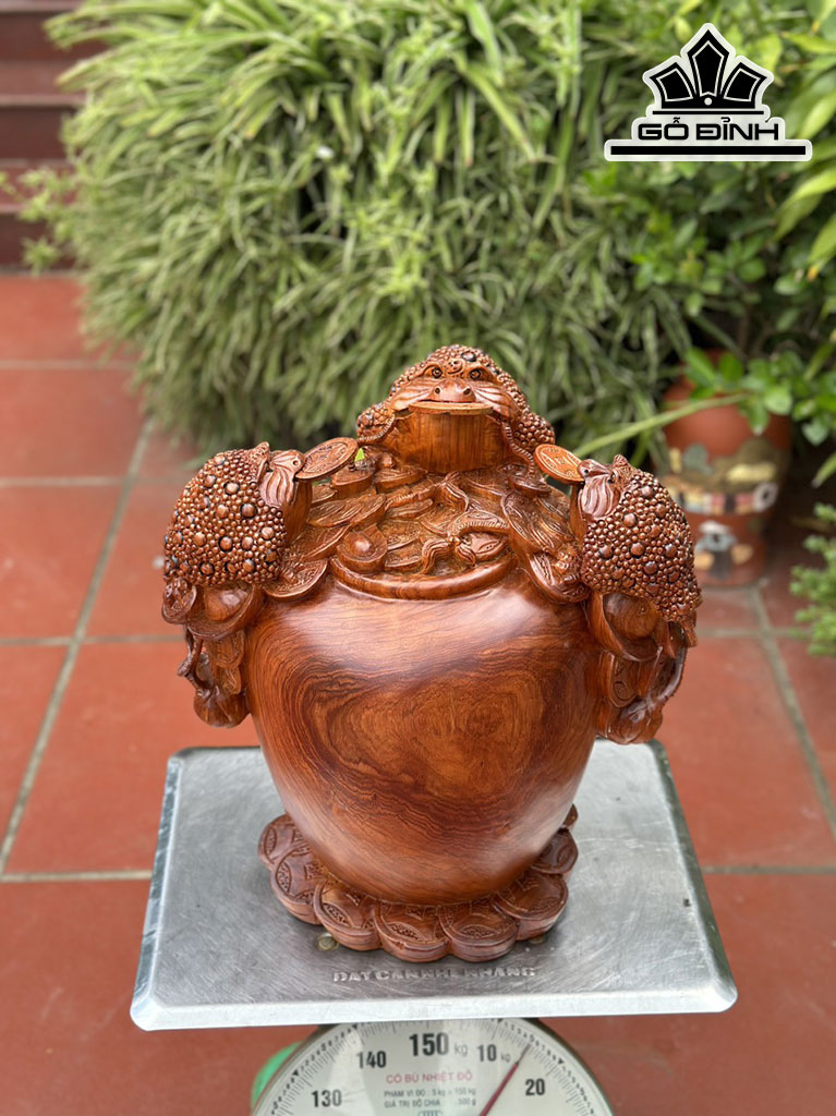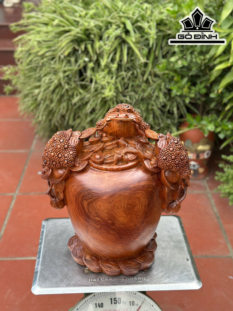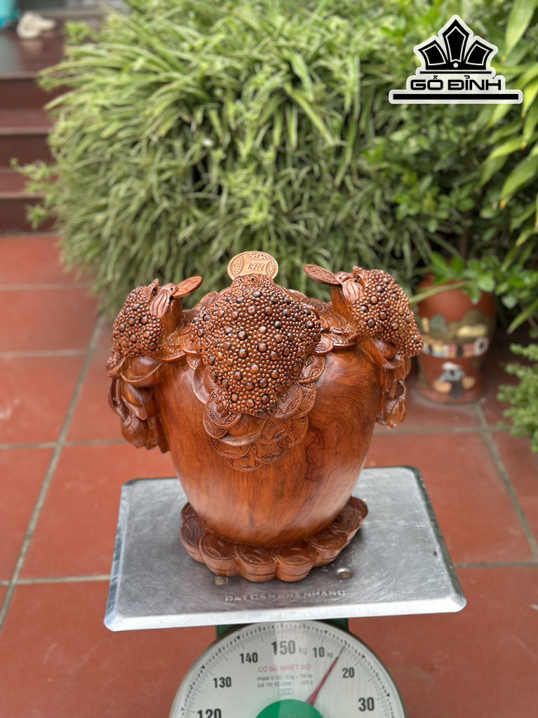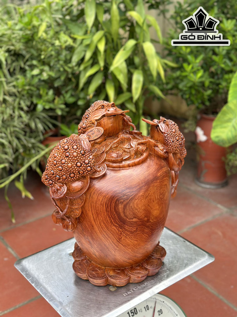 Tượng Tam Cóc Ngậm Tiền Gỗ Hương Cao 41 Ngang 40 Sâu 28 (cm)