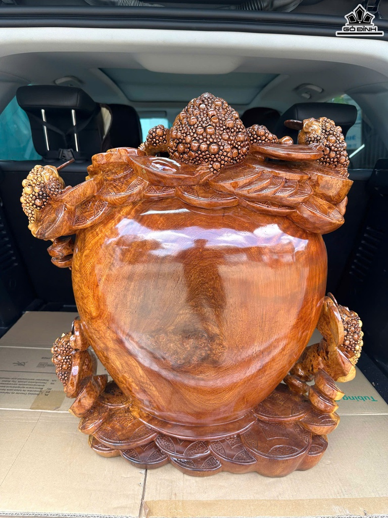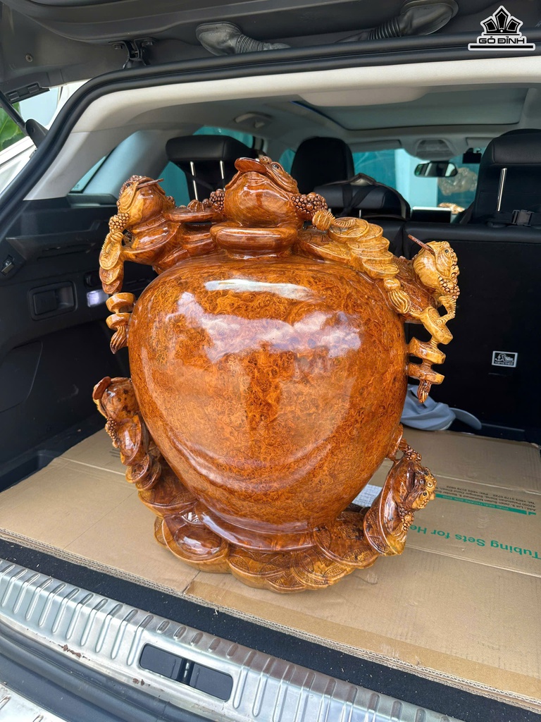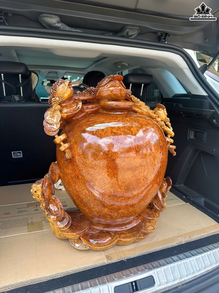 Tượng Tam Cóc Ngậm Tiền Gỗ Nu Hương Cao 60 Ngang 58 Sâu 30 (cm)