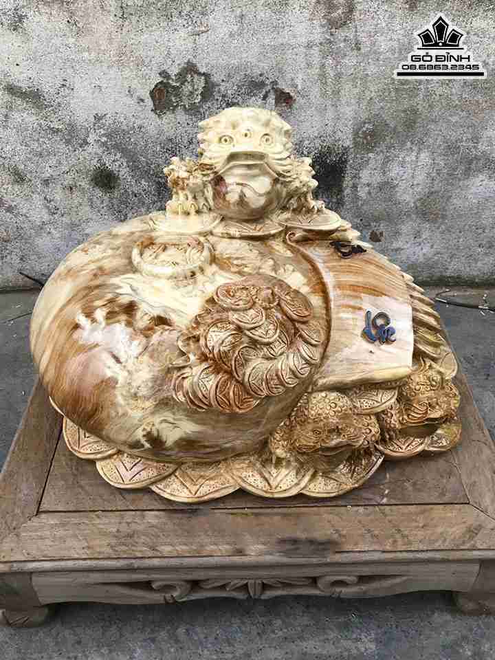 Tượng Tam Cóc Thiềm Thừ Chấn Lộc Gỗ Nu Nghiến Cao 27 Ngang 42 Sâu 33 (cm)