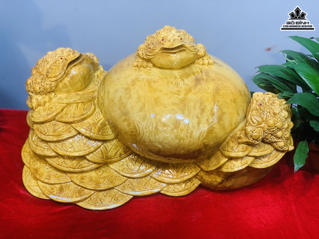 Tượng Tam Cóc Thiềm Thừ Gỗ Nu Kháo Cao 61 Ngang 33 Sâu 35 (cm)