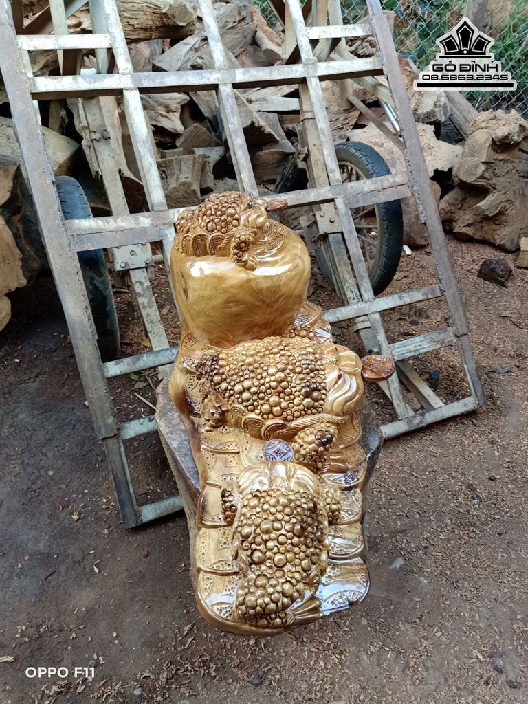 Tượng Tam Cóc Thiềm Thừ Gỗ Xá Xị (Gù Hương) Cao 33 Ngang 70 Sâu 37 (cm)