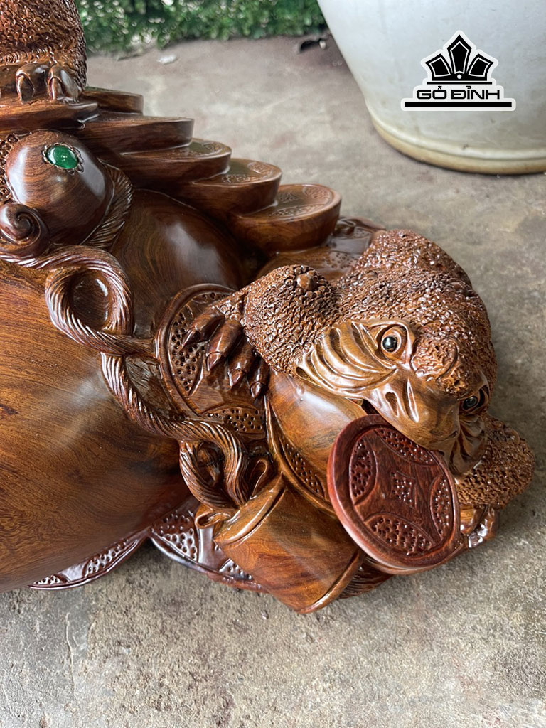 Tượng Tam Cóc Trấn Chum Tiền Gỗ Hương Cao 30 Ngang 60 Sâu 30 (cm)