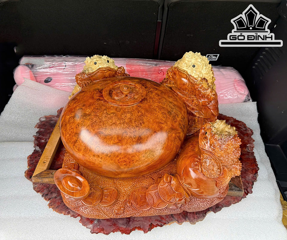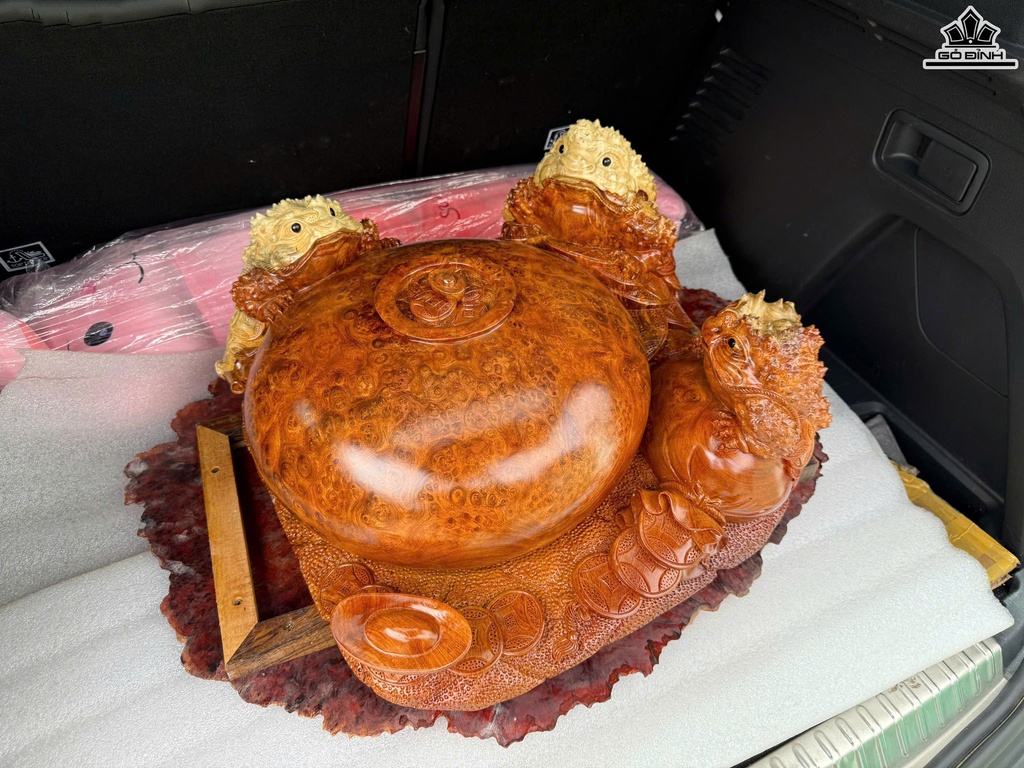 Tượng Tam Cóc Trấn Chum Tiền Gỗ Nu Hương Cao 30 Ngang 45 Sâu 45 (cm)