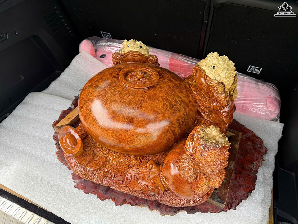 Tượng Tam Cóc Trấn Chum Tiền Gỗ Nu Hương Cao 30 Ngang 45 Sâu 45 (cm)
