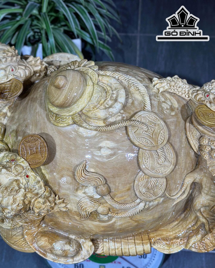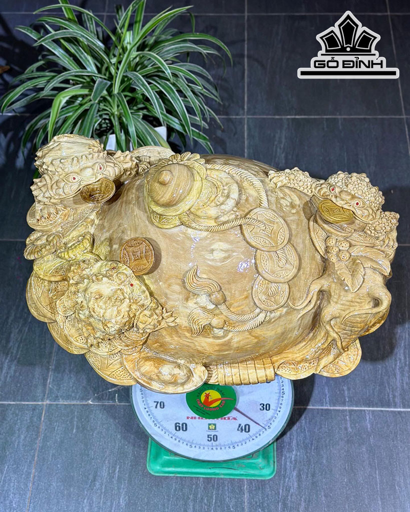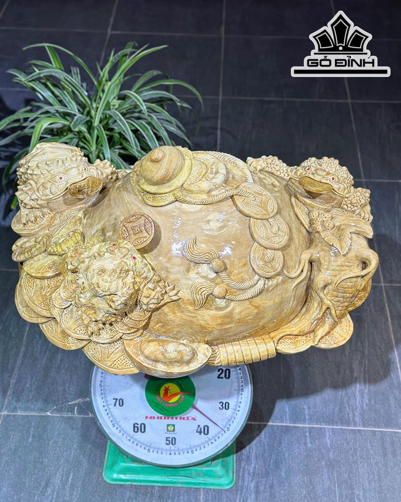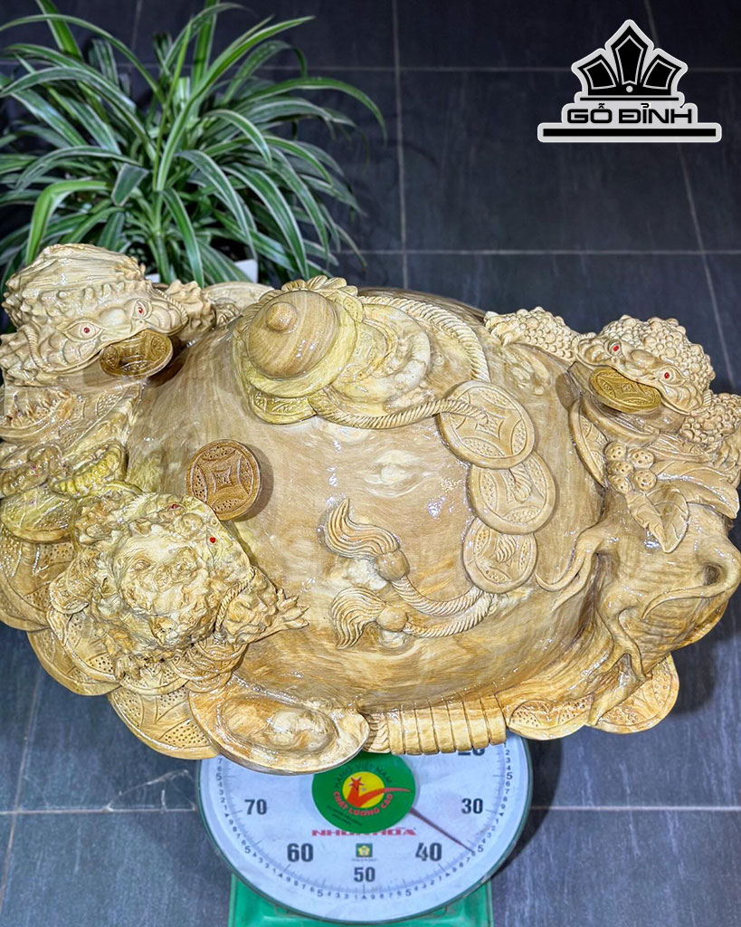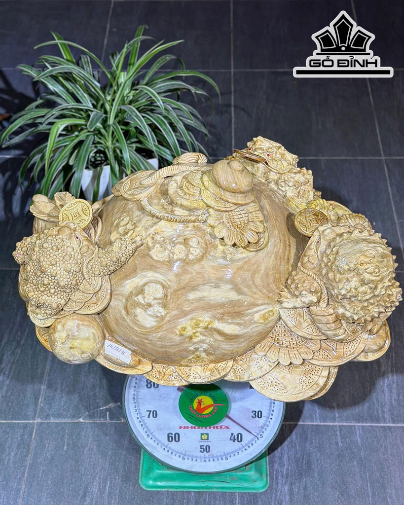 Tượng Tam Cóc Trấn Chum Tiền Gỗ Nu Nghiến Cao 26 Ngang 56 Sâu 41 (cm)