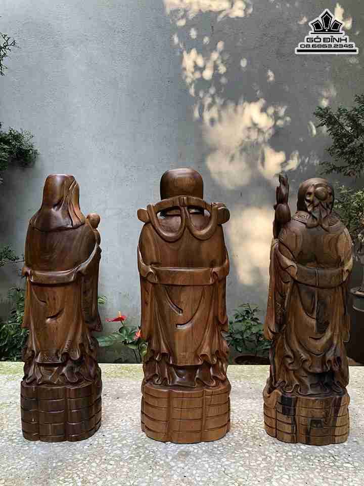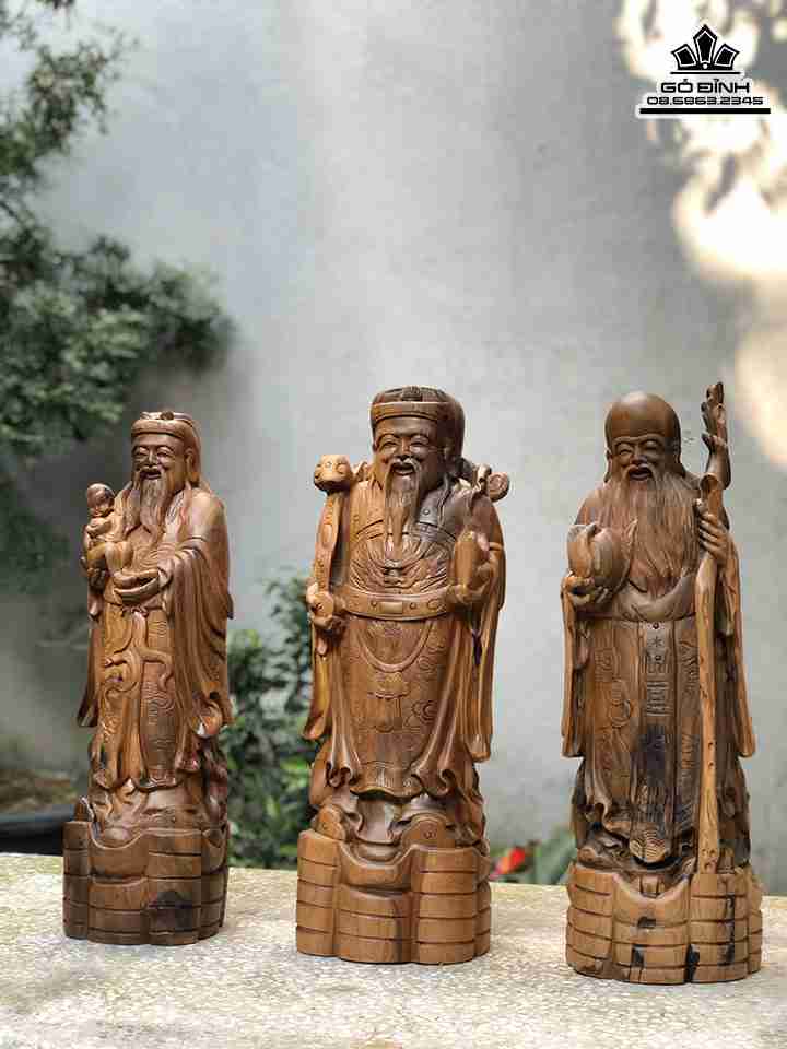 Tượng Tam Đa Phúc Lộc Thọ Gỗ Bách Xanh Cao 50 Ngang 15 Sâu 13 (cm)