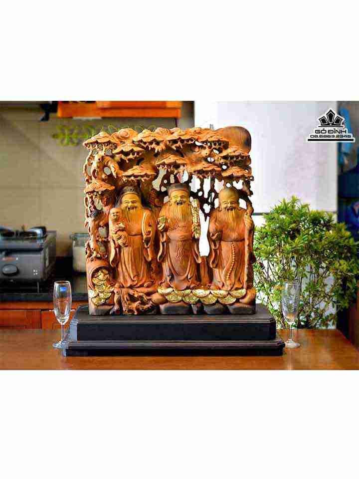 Tượng Tam Đa Phúc Lộc Thọ Gỗ Bách Xanh Cao 55 Rộng 50 Dày 13 (cm)