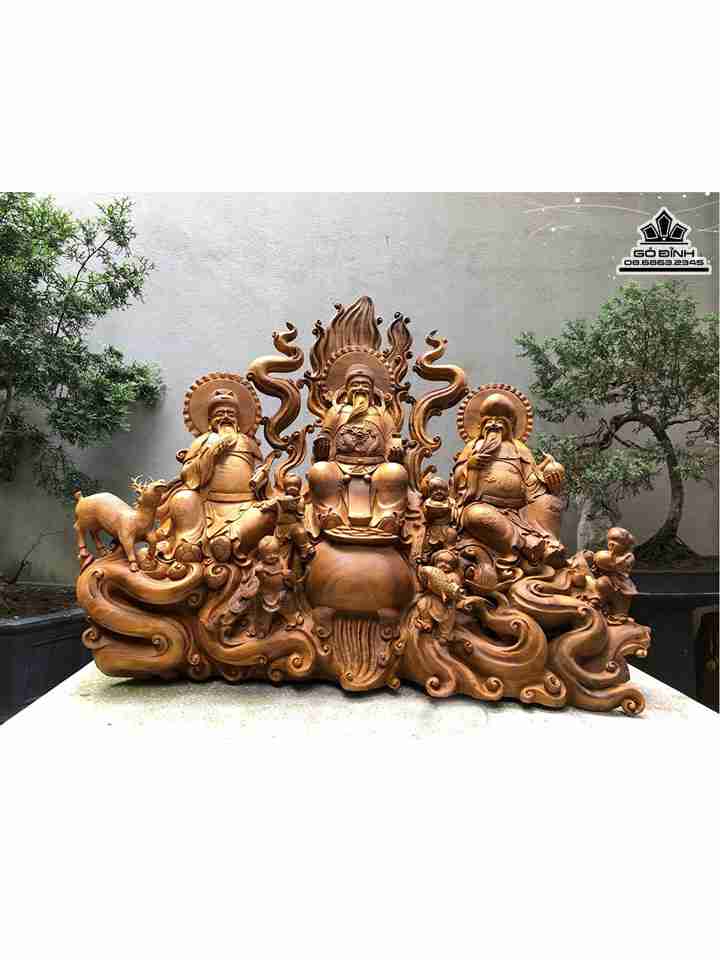 Tượng Tam Đa Phúc Lộc Tho Gỗ Bách Xanh