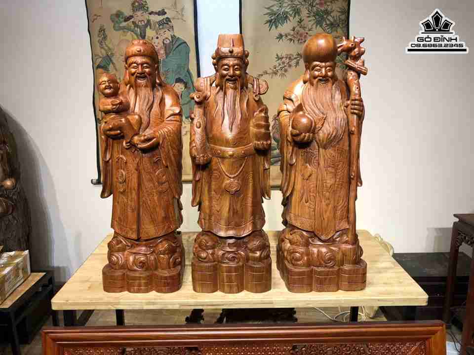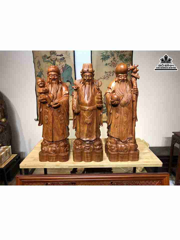Tượng Tam Đa Phúc Lộc Thọ Gỗ Hương Cao 82 Ngang 26 Sâu 23 (cm)