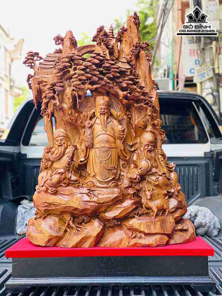 Tượng Tam Đa Phúc Lộc Thọ Gỗ Hương Việt Liền Khối Cao 90 Ngang 60 Sâu 23 (cm)