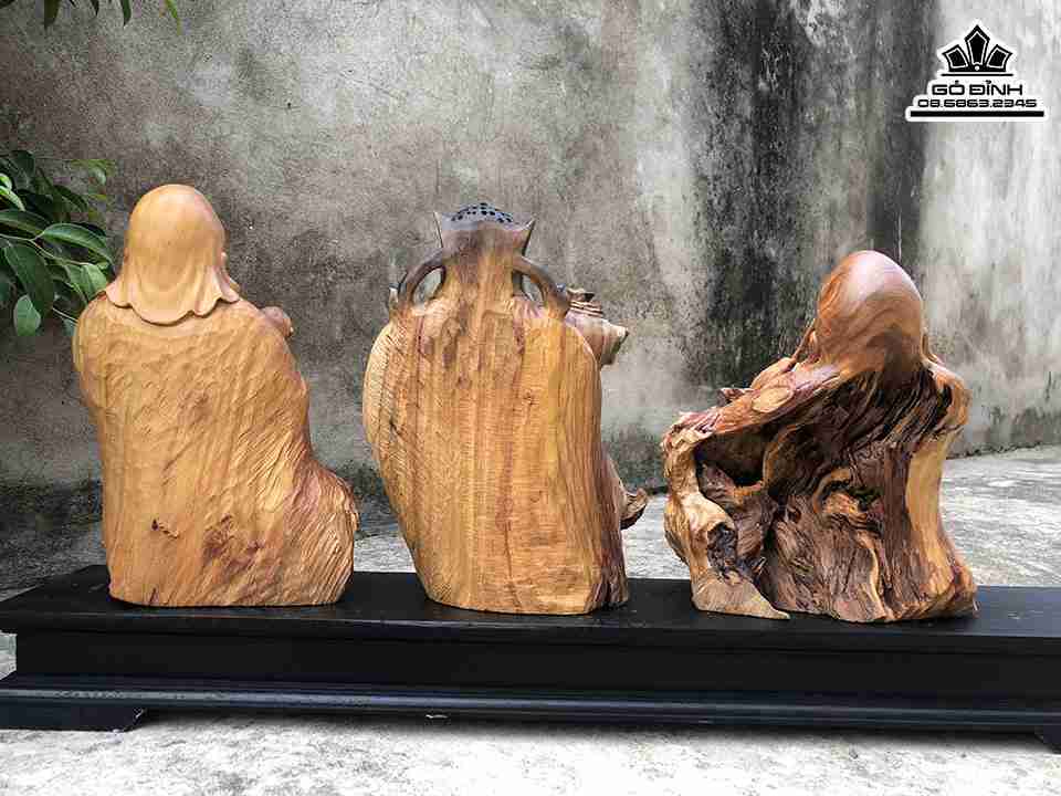 Tượng Tam Đa Phúc Lộc Thọ Gỗ Nu Bách Xanh Cao 30 Ngang 23 Sâu 14 (cm)