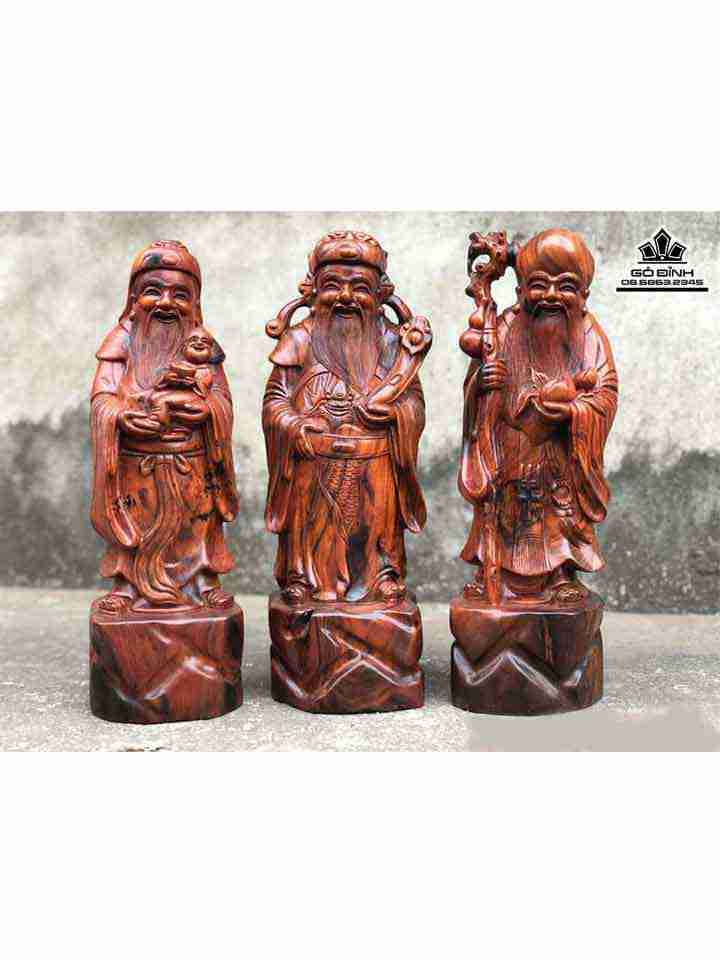 Tượng Tam Đa Phúc Lộc Thọ Gỗ Trắc Cao 38 Rộng 13 Dày 13 (cm)