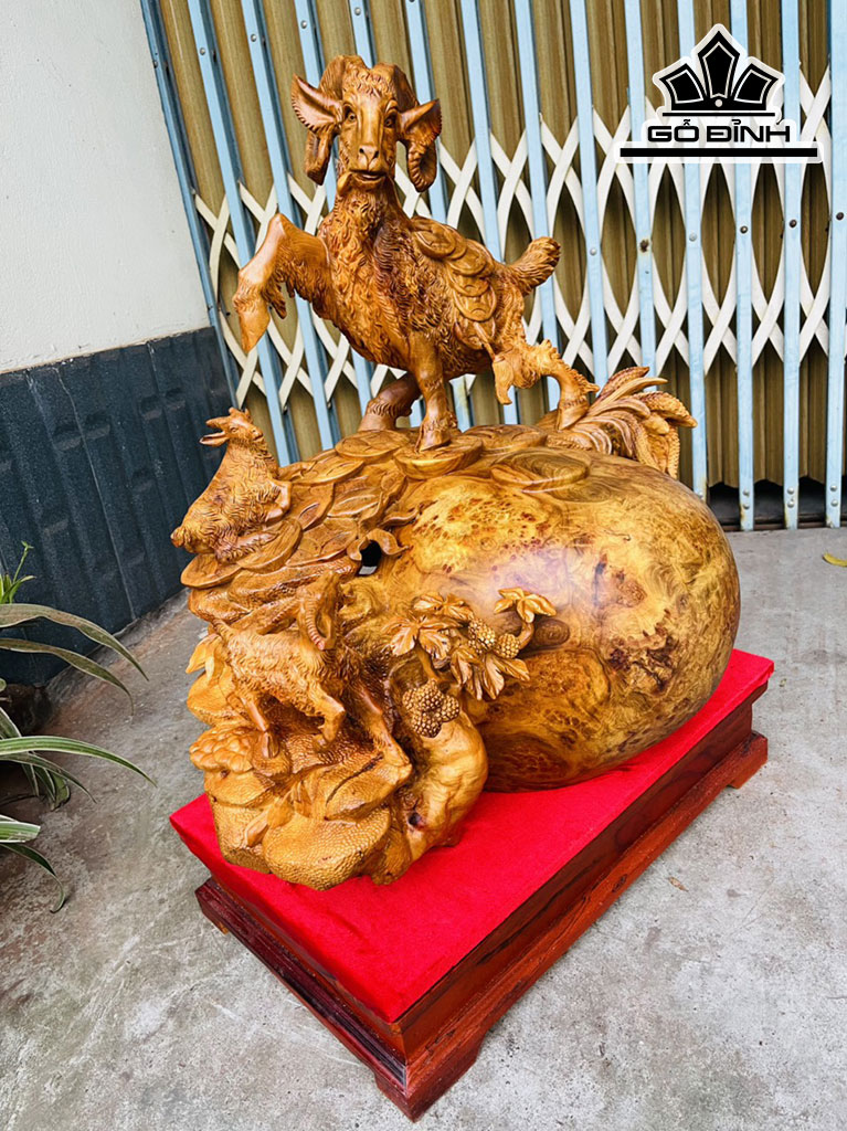 Tượng Tam Dương Gỗ Nu Hương Cao 58 Ngang 50 Sâu 40 (cm)