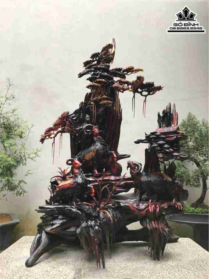 Tượng Tam Dương gỗ trắc cao 1m50 ngang 93 sâu 63 (cm)