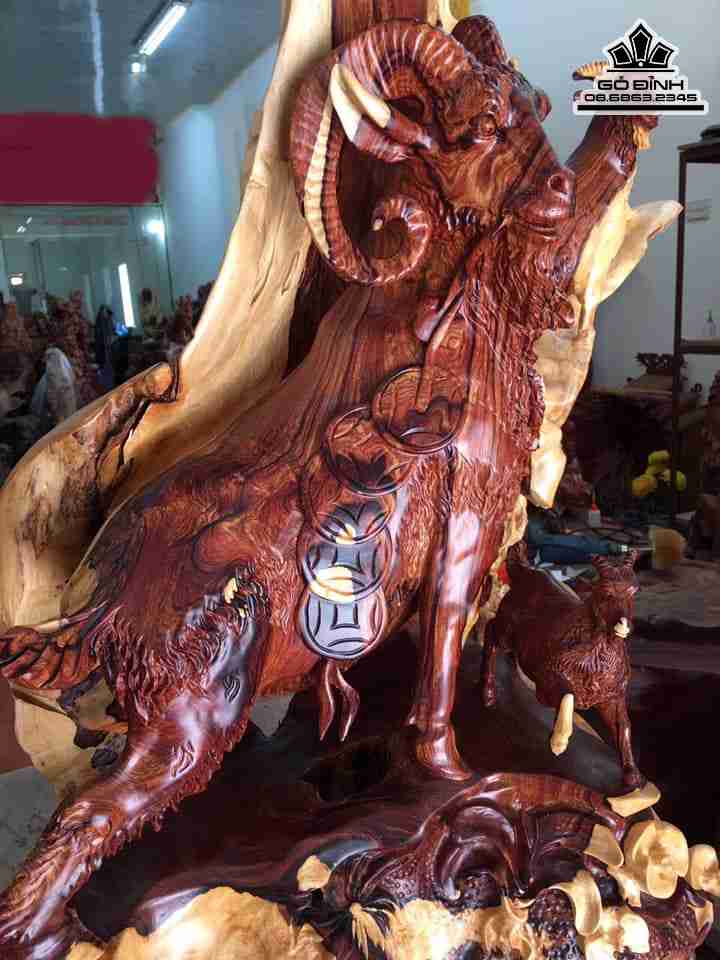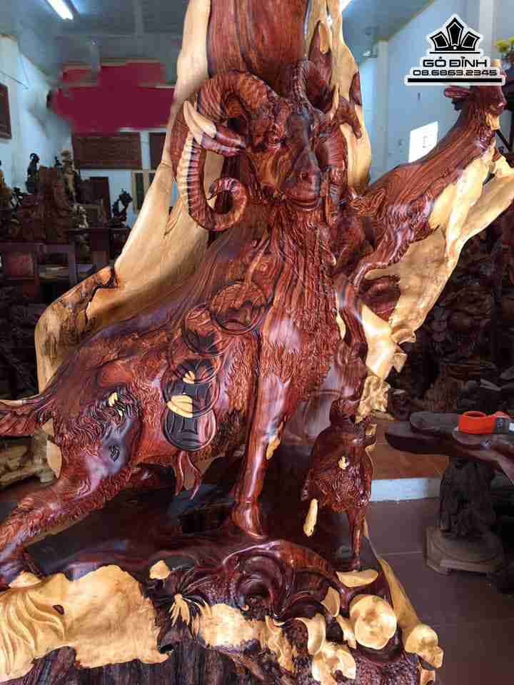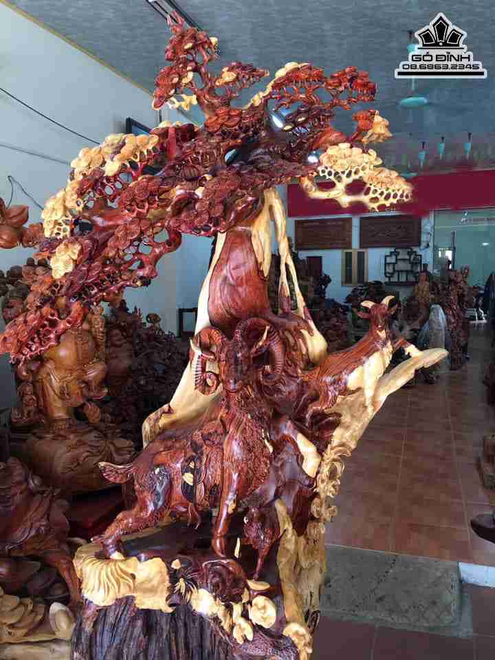 Tượng Tam Dương Khai Thái Gỗ Cẩm Cao 170 Rộng 80 Sâu 40 (cm)