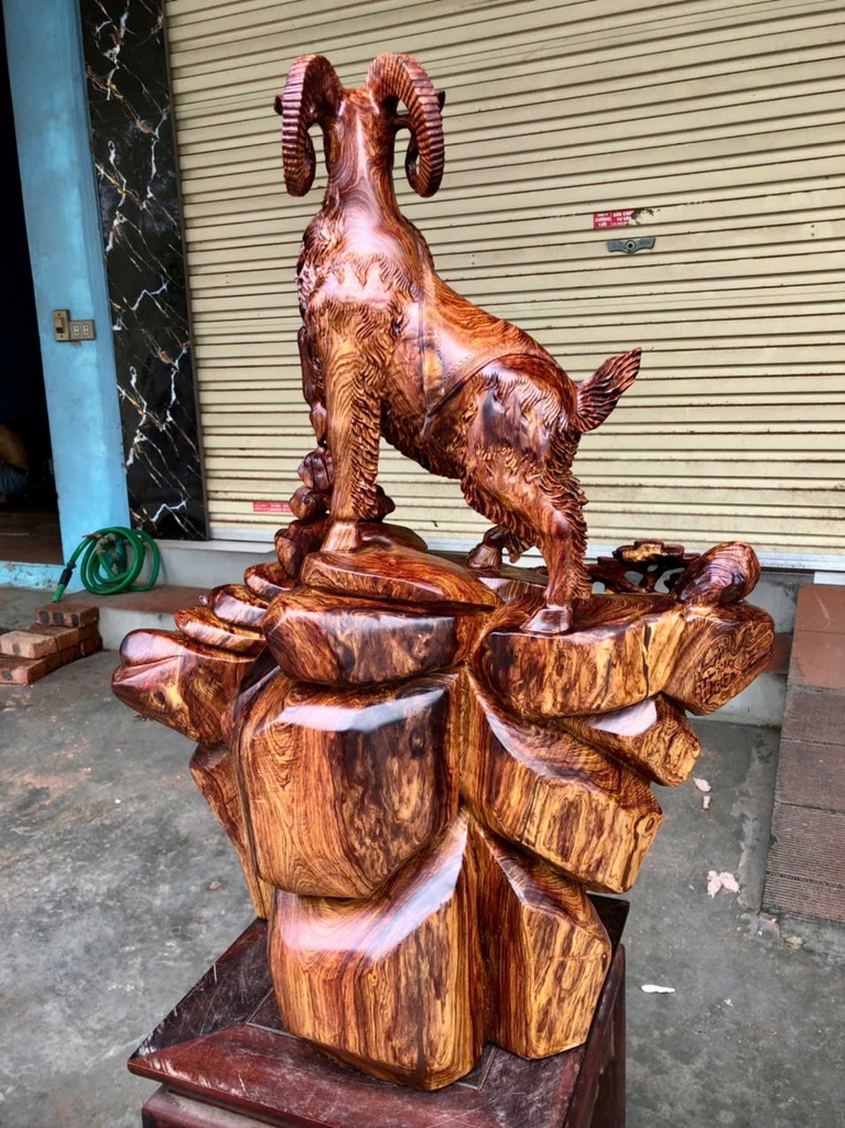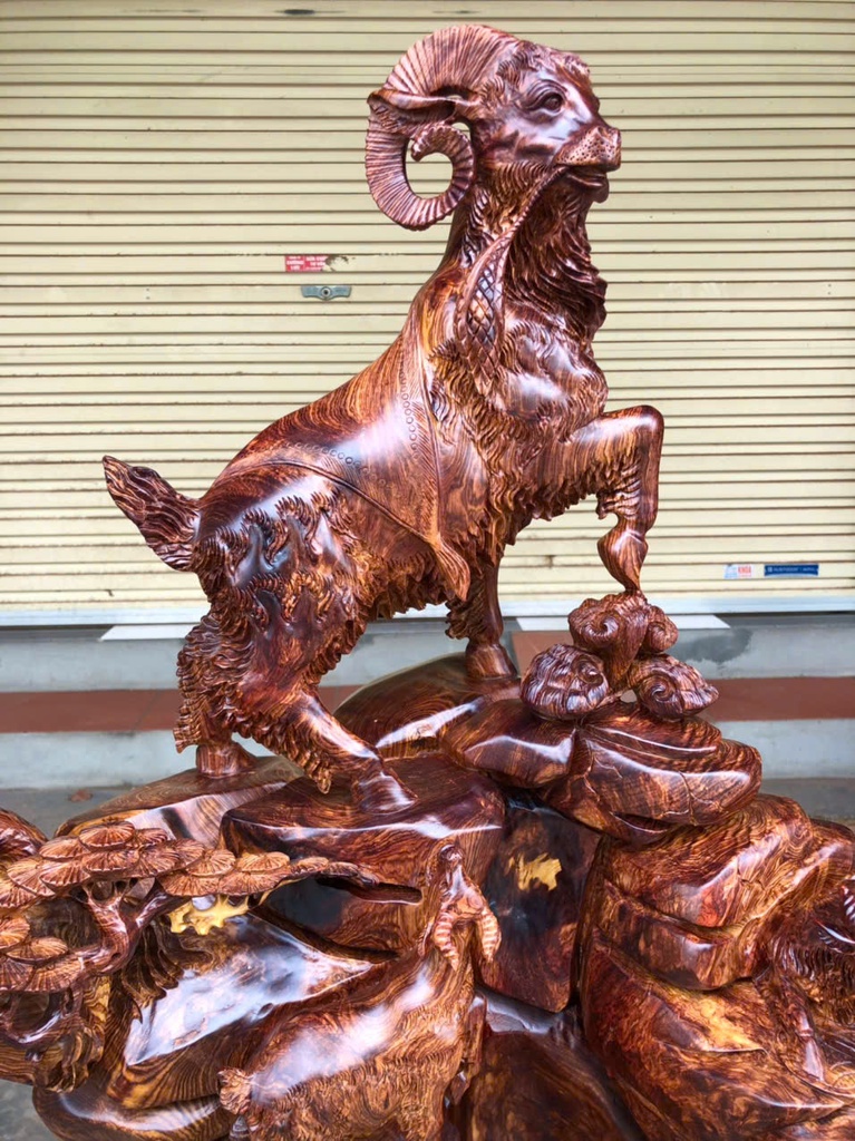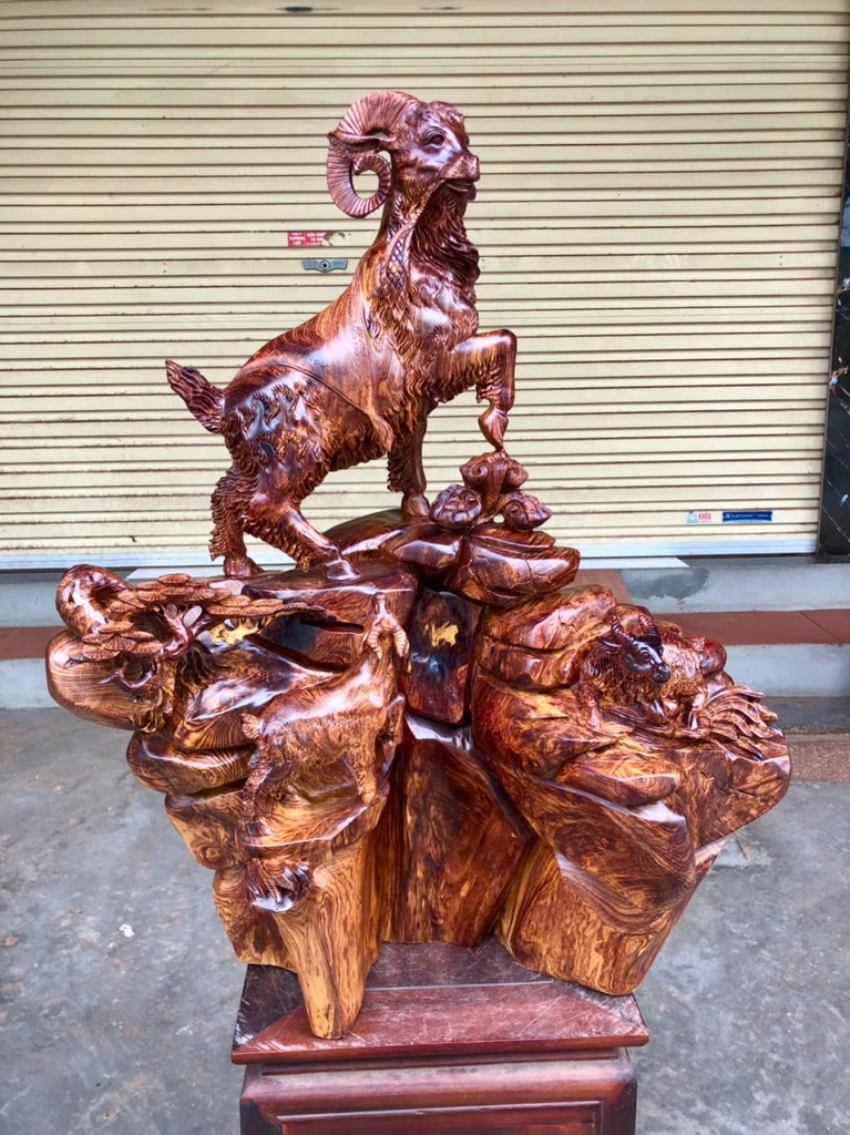Tượng Tam Dương Khai Thái Gỗ Cẩm Cao 77 Ngang 63 Sâu 30 (cm)