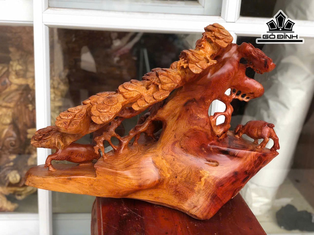 Tượng Tam Dương Khai Thái Gỗ Hương Cao 55 Ngang 45 Sâu 35 (cm)