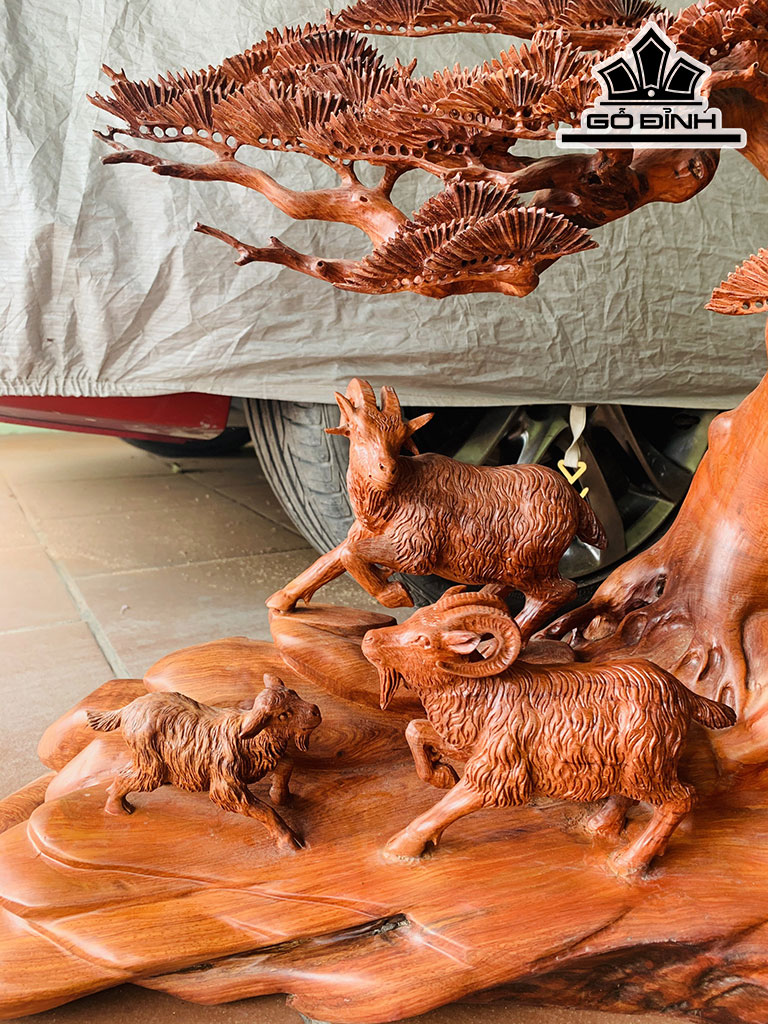 Tượng Tam Dương Khai Thái Gỗ Hương Cao 62 Ngang 55 Sâu 28 (cm)