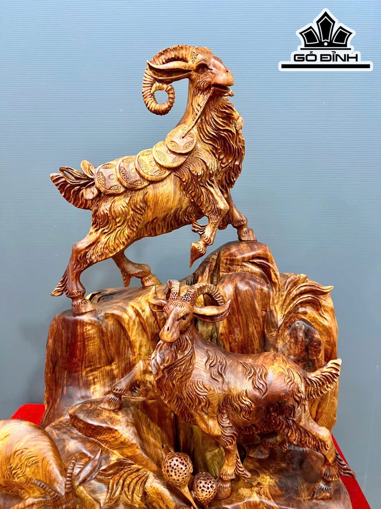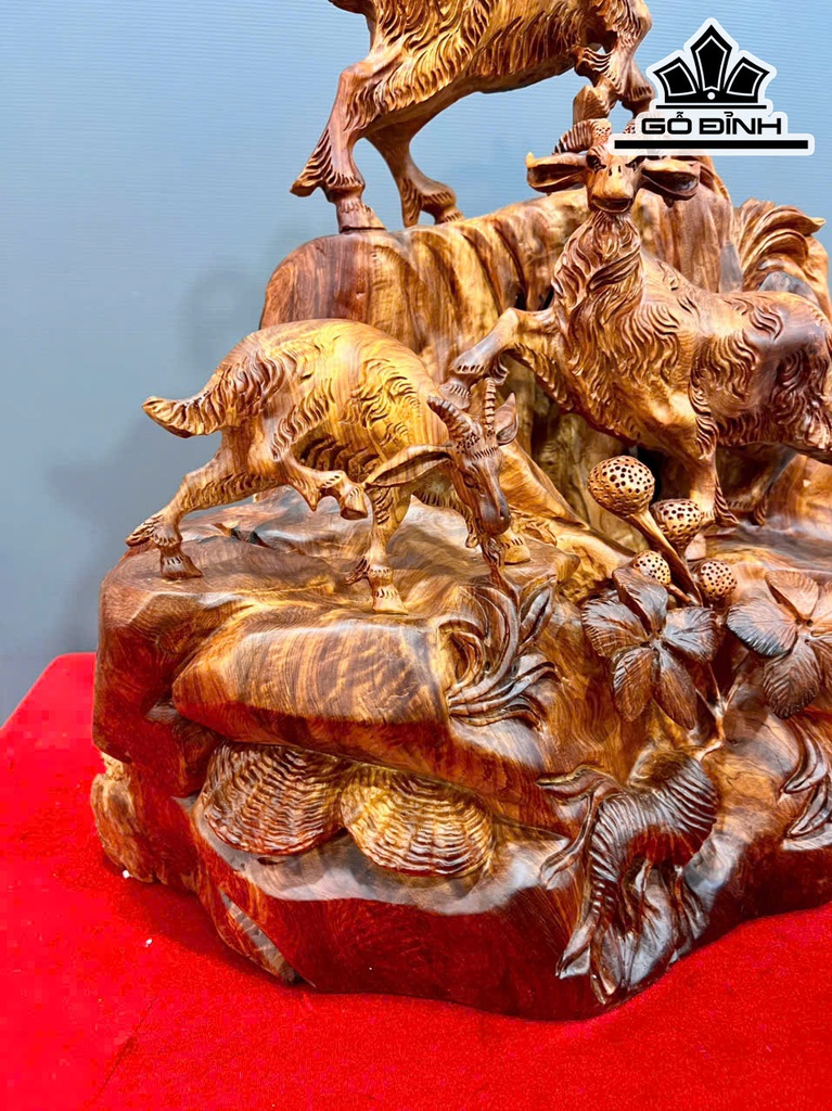 Tượng Tam Dương Khai Thái Gỗ Hương Cao 66 Ngang 48 Sâu 40 (cm)