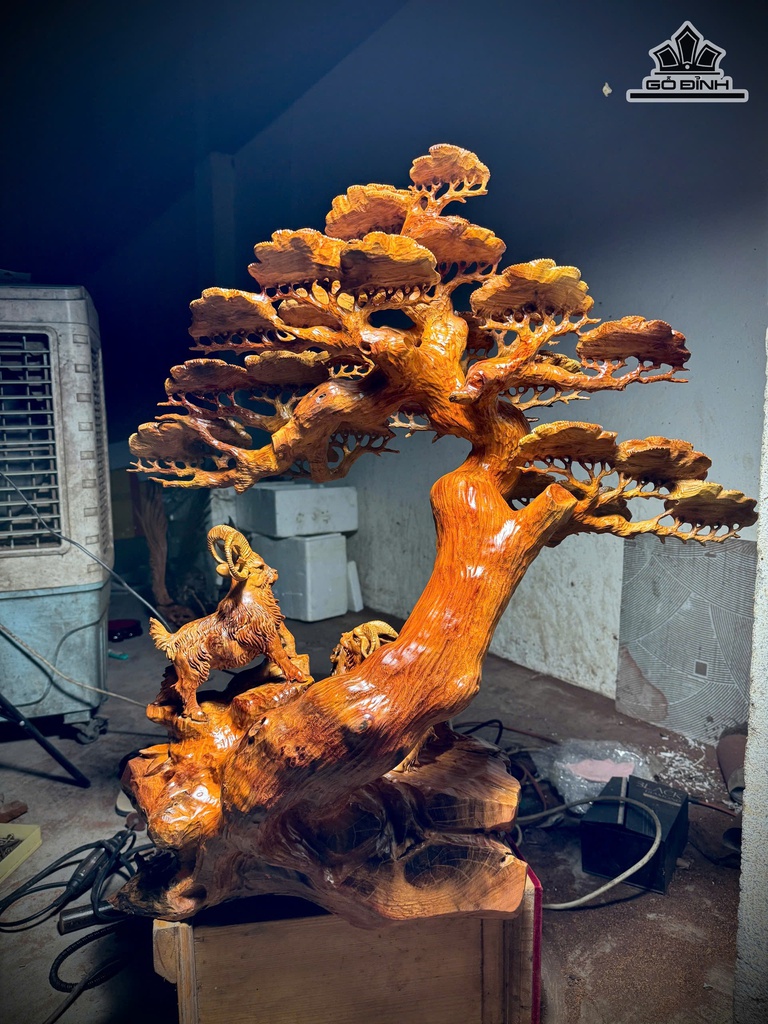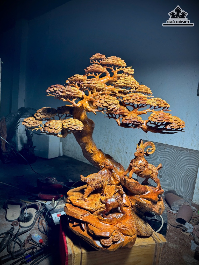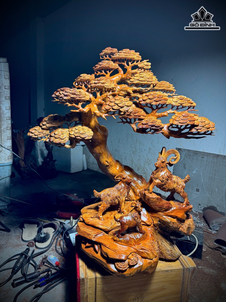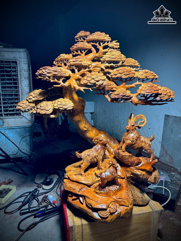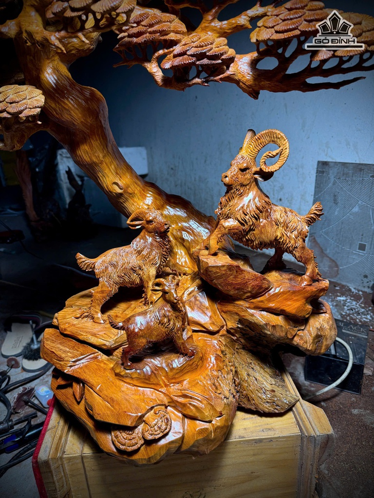 Tượng Tam Dương Khai Thái Gỗ Hương Cao 85 Ngang 80 Sâu 30 (cm)