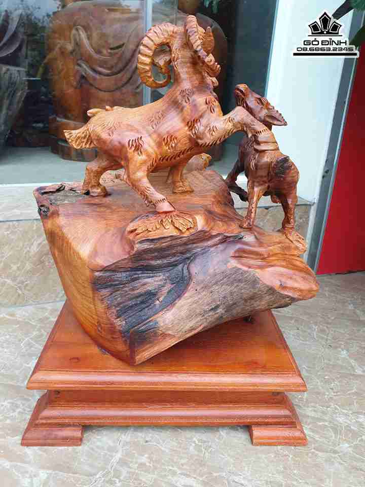 Tượng Tam Dương Khai Thái Gỗ Hương Ôm Đá Cao 38 Ngang 30 Sâu 22 (cm)