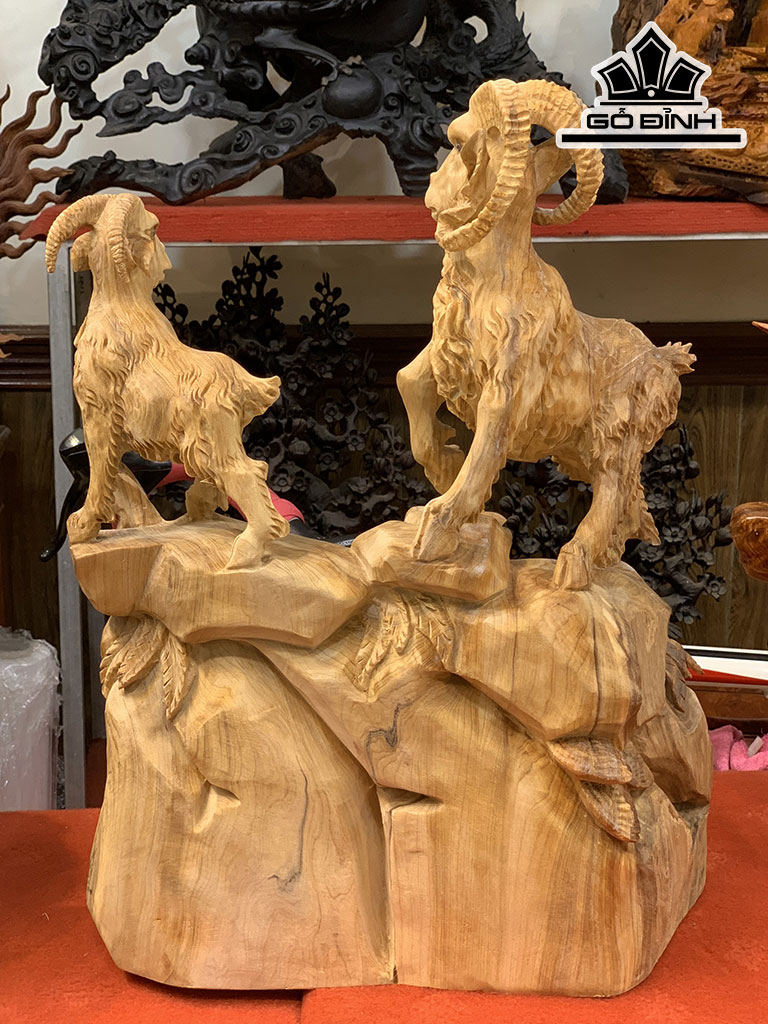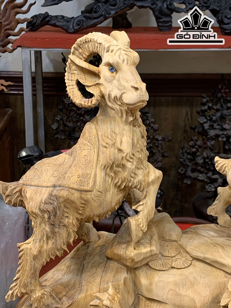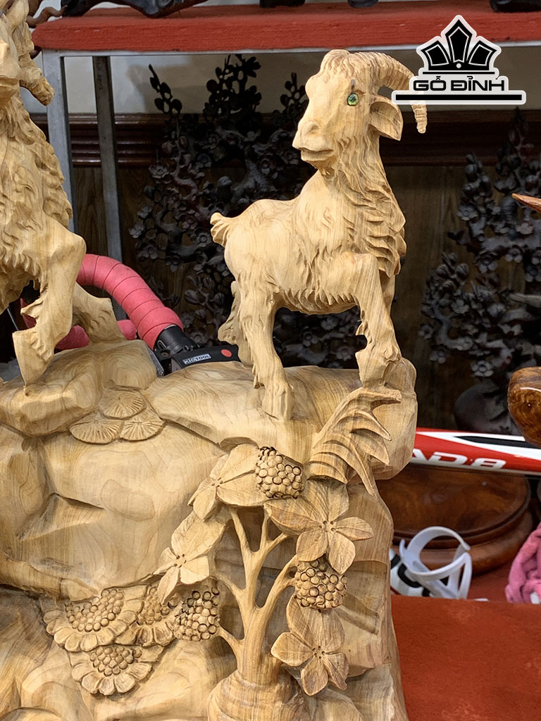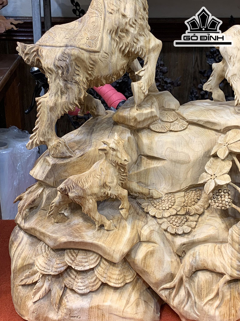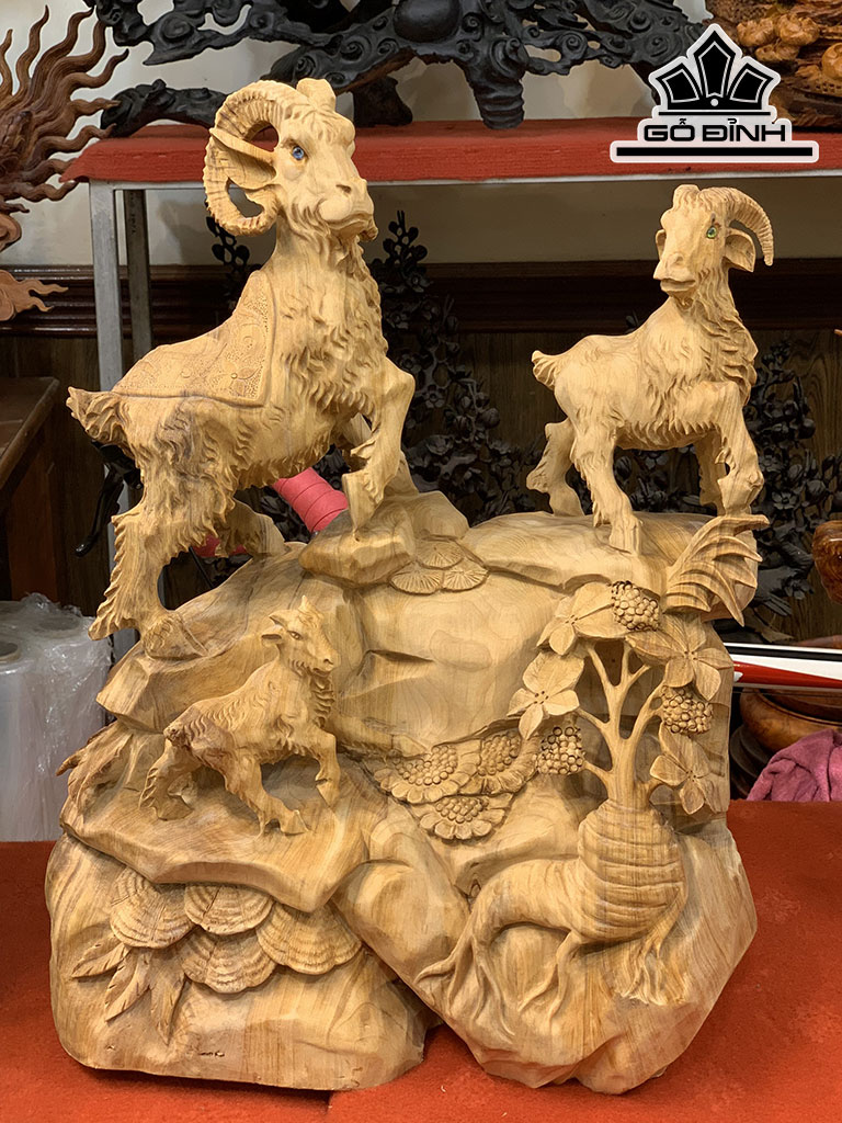 Tượng Tam Dương Khai Thái Gỗ Ngọc Am Cao 55 Ngang 40 Sâu 25 (cm)