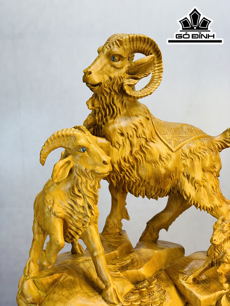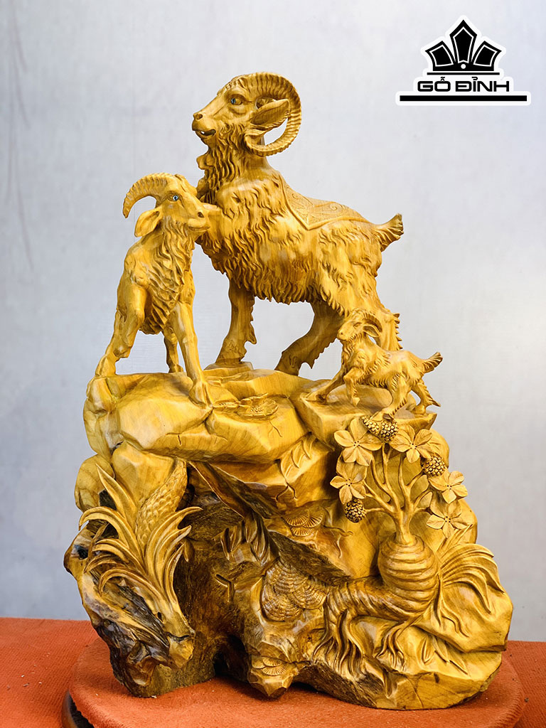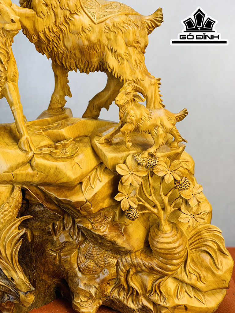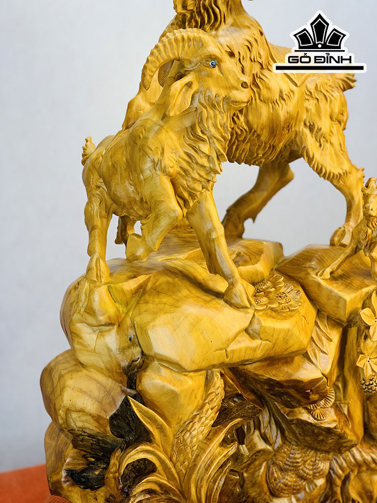 Tượng Tam Dương Khai Thái Gỗ Ngọc Am Cao 81 Ngang 58 Sâu 27 (cm)