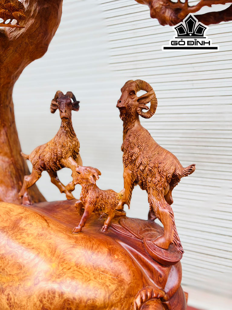 Tượng Tam Dương Khai Thái Gỗ Nu Hương Cao 110 Ngang 65 Sâu 33 (cm)