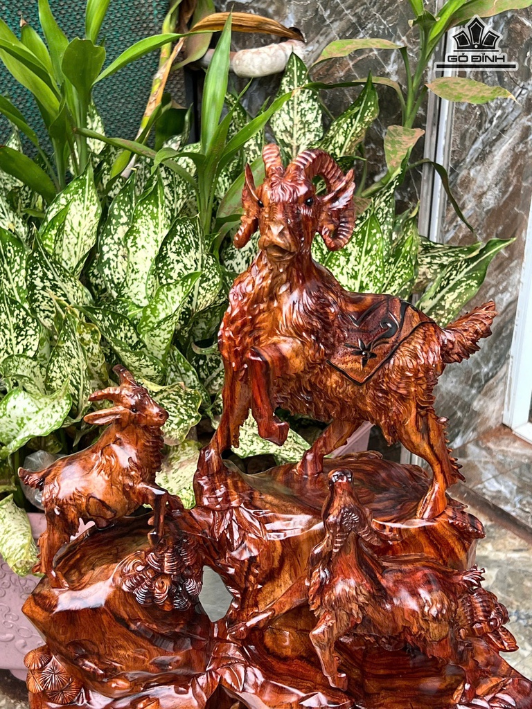Tượng Tam Dương Khai Thái Gỗ Sưa Cao 43 Ngang 37 Sâu 22 (cm)