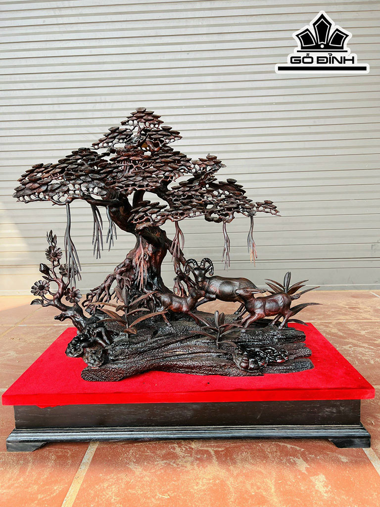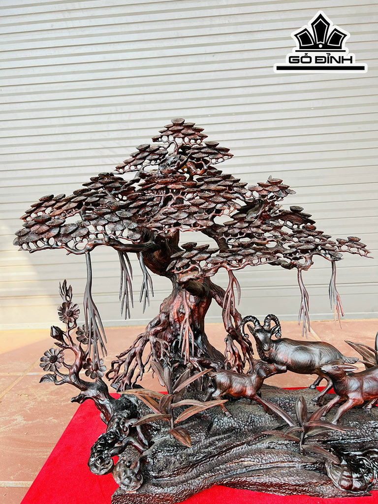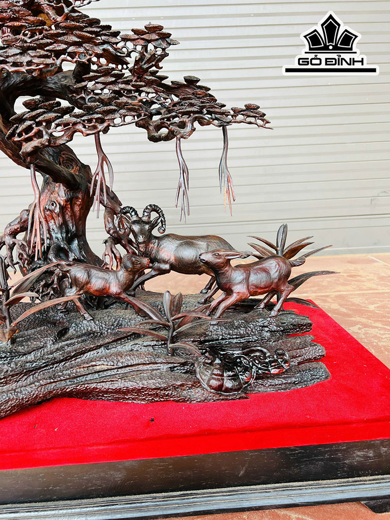Tượng Tam Dương Khai Thái Gỗ Trắc Cao 69 Ngang 68 Sâu 38 (cm)