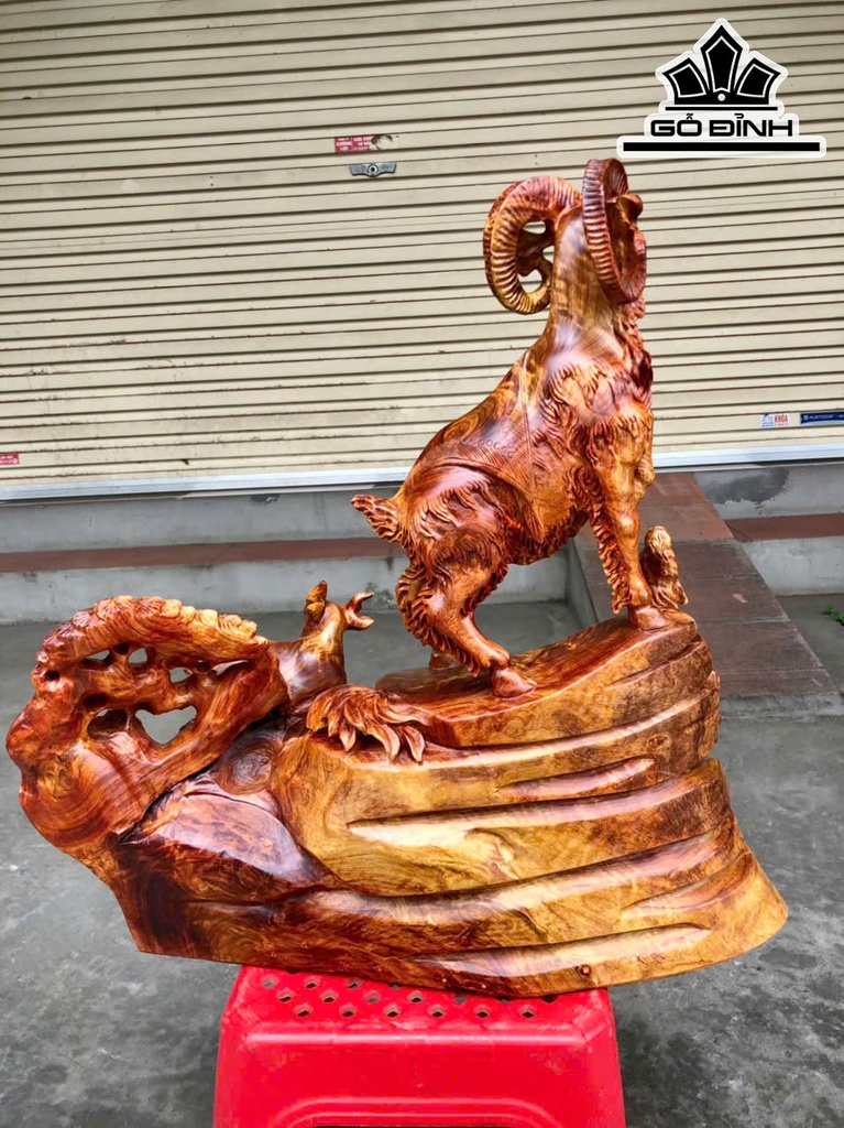 Tượng Tam Dương Phong Thủy Gỗ Hương Cao 48 Ngang 50 Sâu 19 (cm)