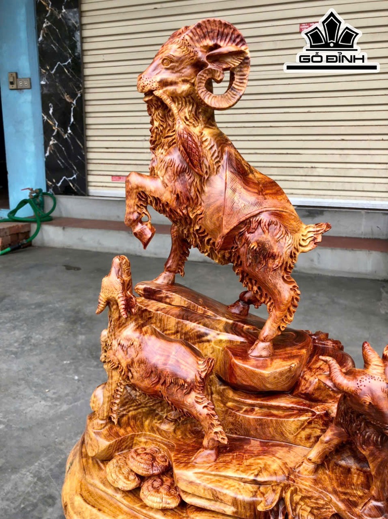 Tượng Tam Dương Phong Thủy Gỗ Hương Cao 48 Ngang 50 Sâu 19 (cm)