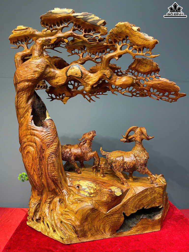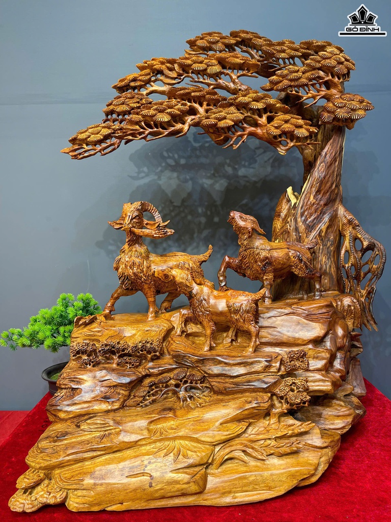 Tượng Tam Dương Quần Tùng Gỗ Cẩm Cao 86 Ngang 62 Sâu 46 (cm)