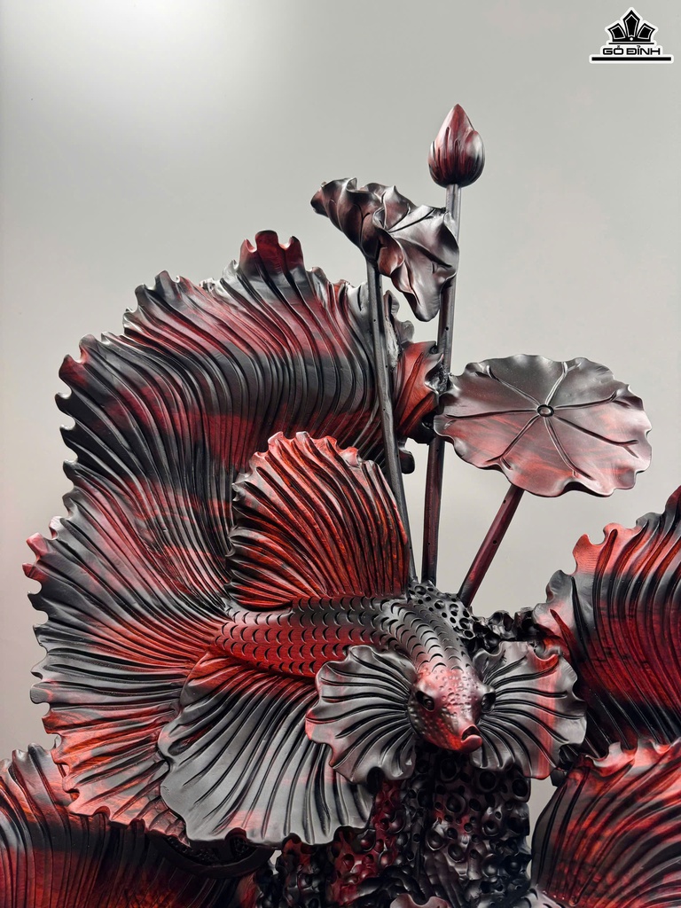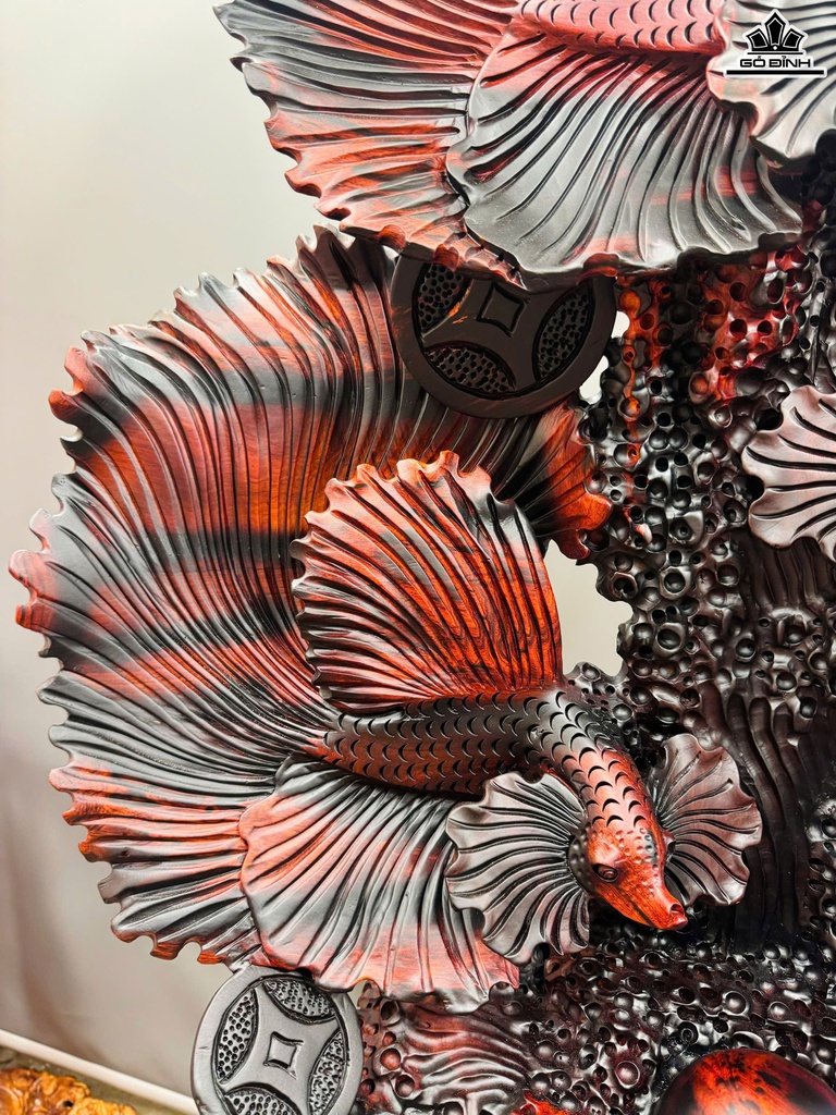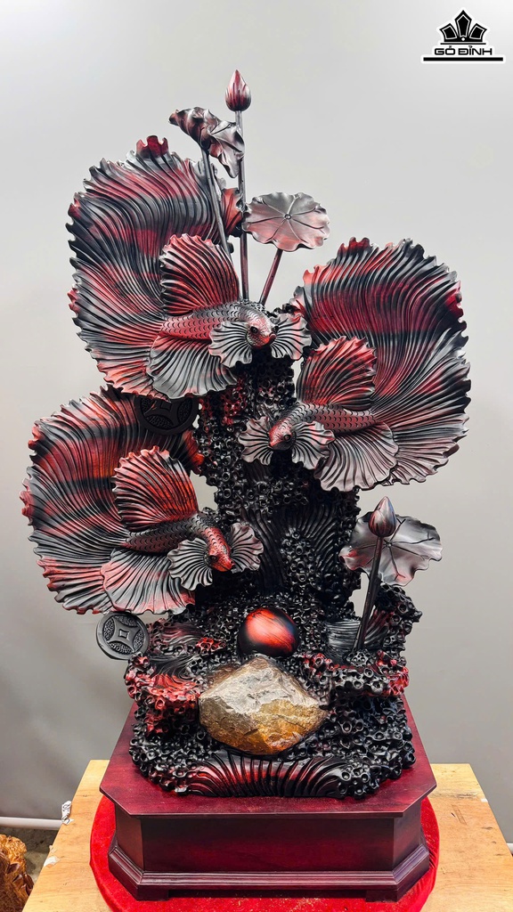 Tượng Tam Ngư Chầu Ngọc Gỗ Trắc Cao Cả Kỷ 125 Ngang 76 Sâu 33 (cm) - Kỷ Cao 15