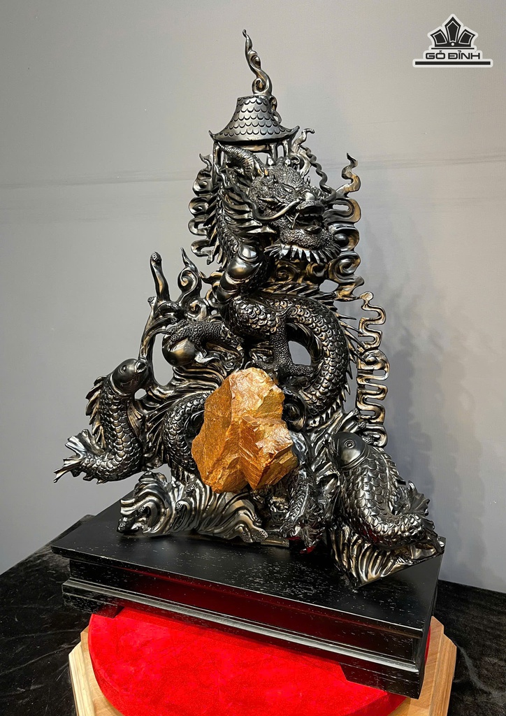 Tượng Tam Ngư Hóa Rồng Gỗ Mun Sừng Cao 82 Ngang 58 Sâu 21 (cm) - Kỷ Cao 10