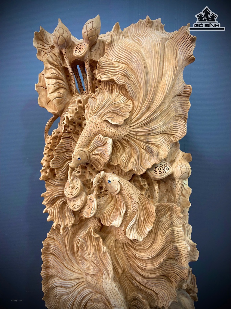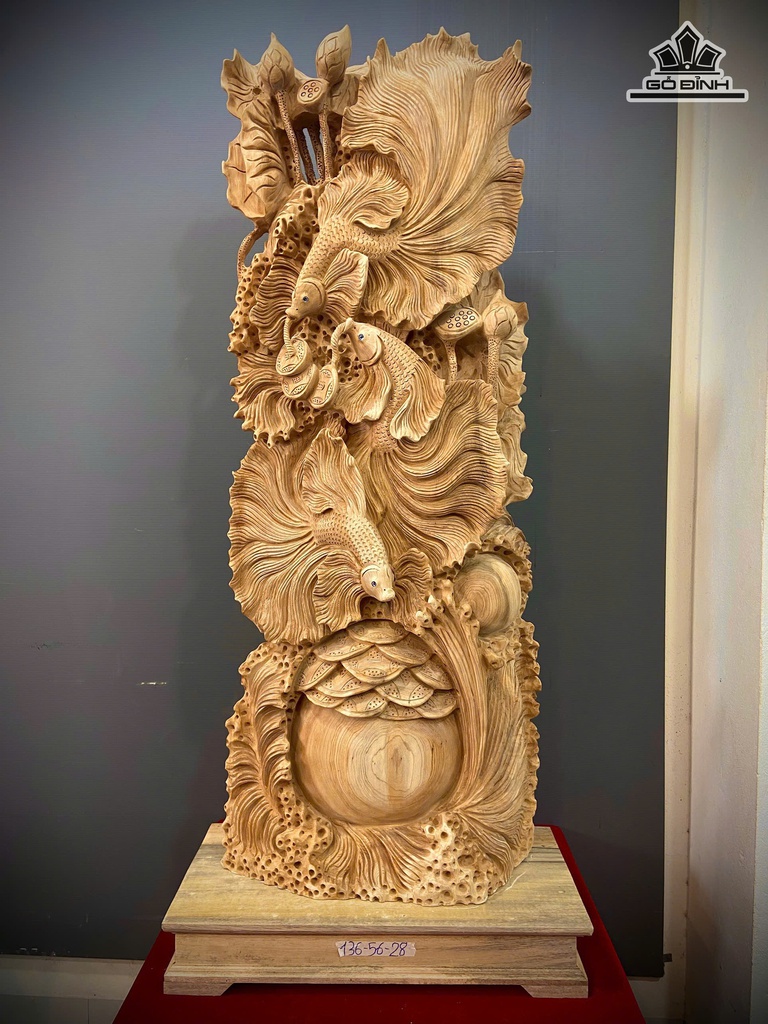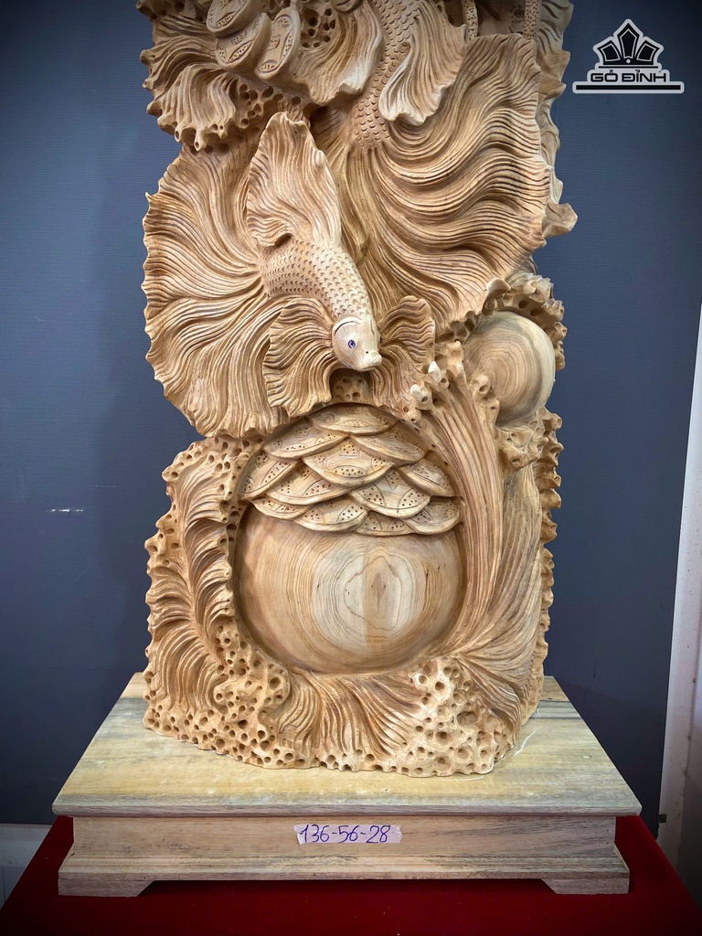 Tượng Tam Ngư Vờn Ngọc Gỗ Ngọc Am Cao 136 Ngang 56 Sâu 28 (cm)