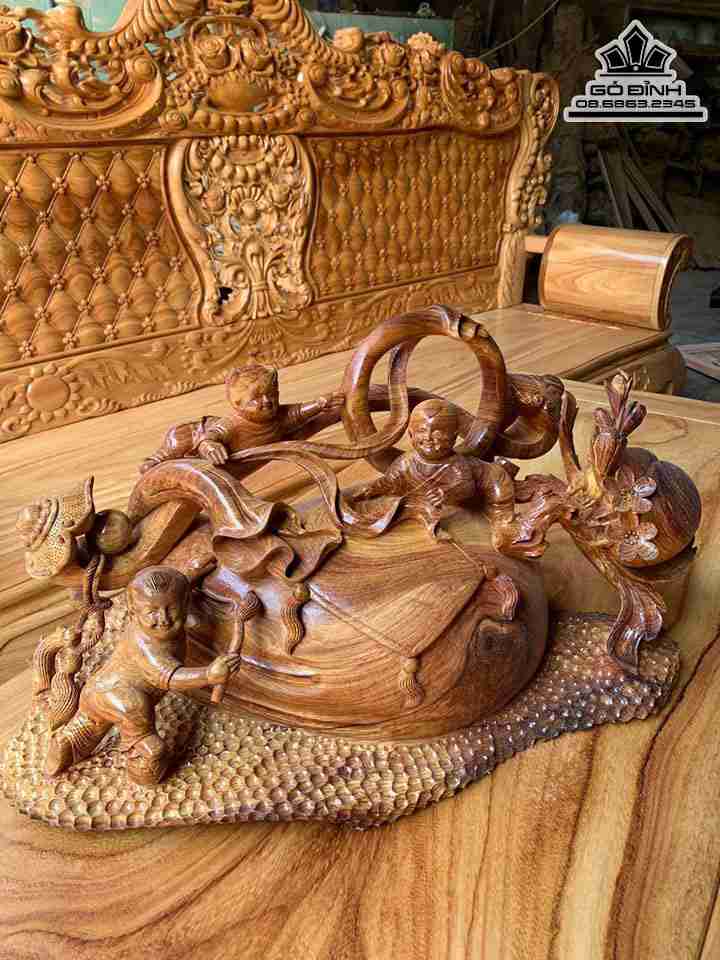 Tượng Tam Phúc Gỗ Cẩm Cao 30 Ngang 55 Sâu 30 (cm)