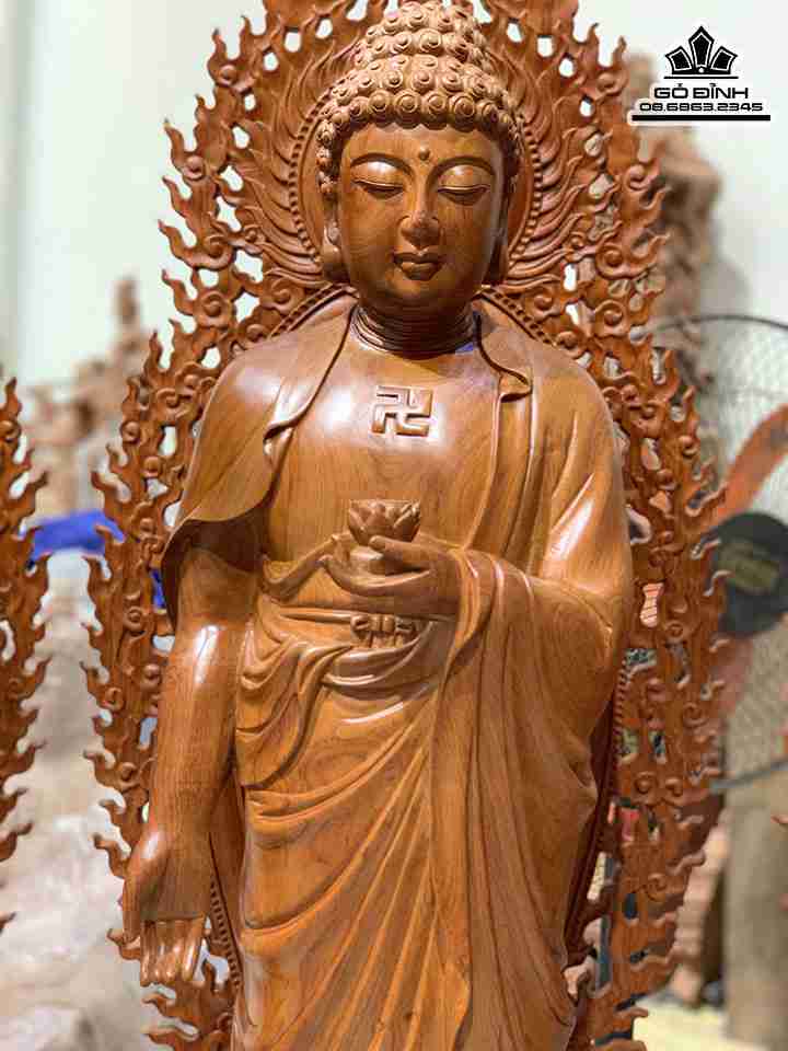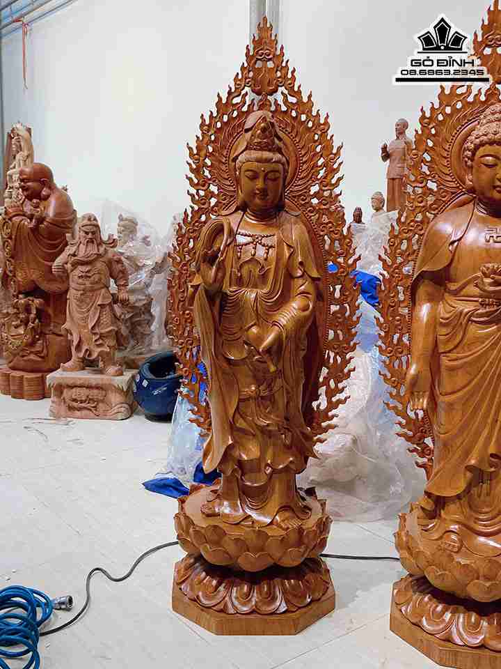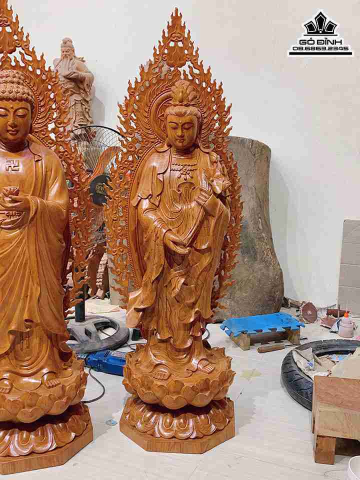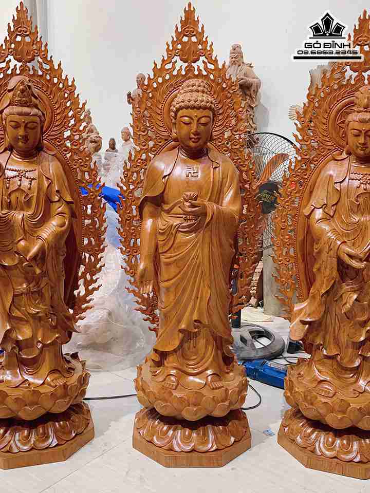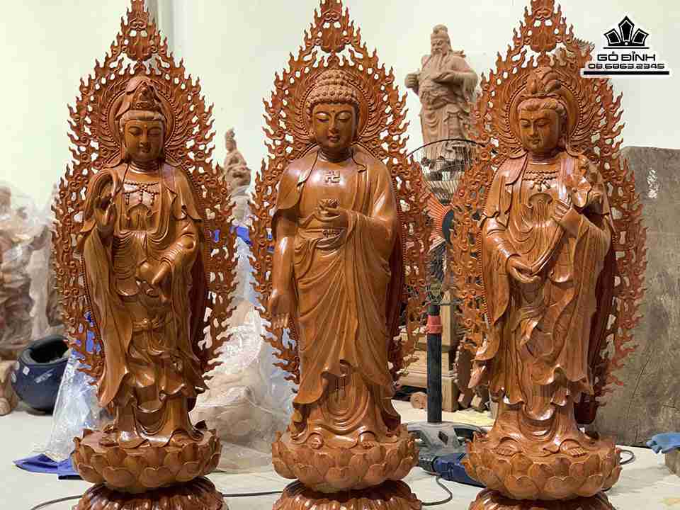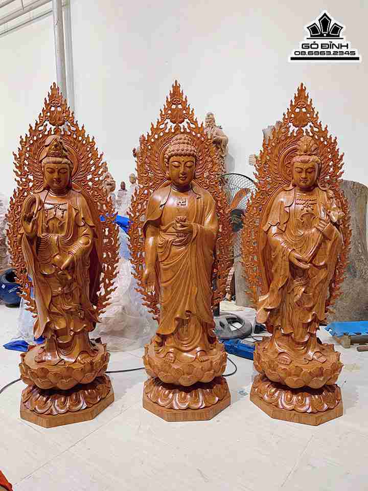Tượng Tam Thánh Gỗ Hương Cao 100 Ngang 35 Sâu 33 (cm)