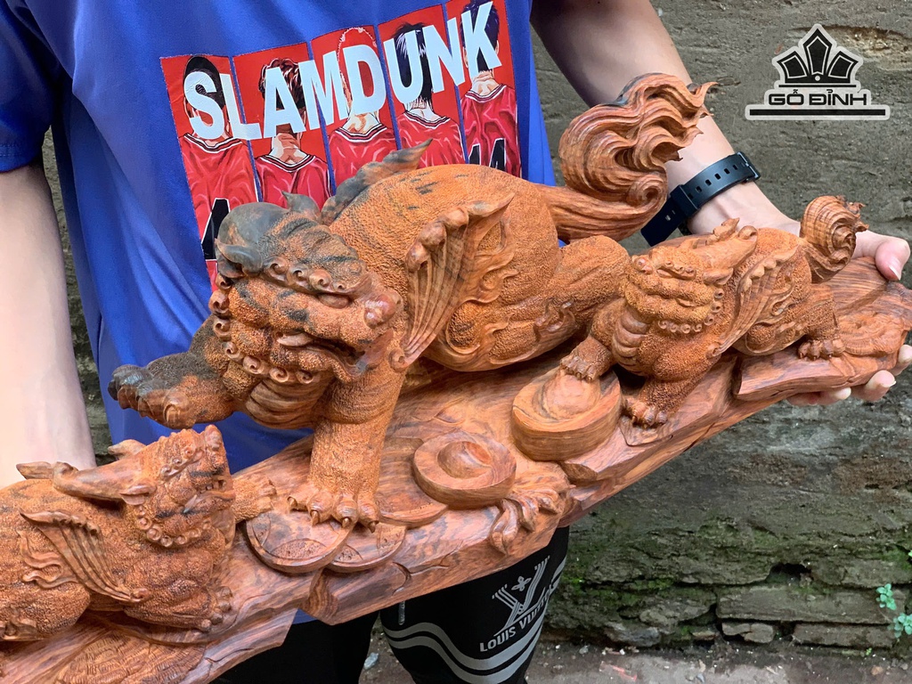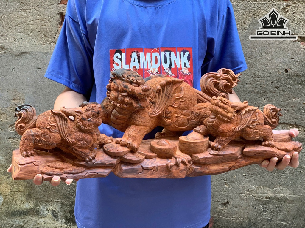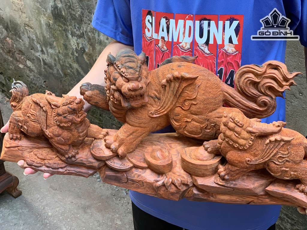Tượng Tam Tỳ Hưu Gỗ Trắc Cao 61 Ngang 22 Sâu 16 (cm)