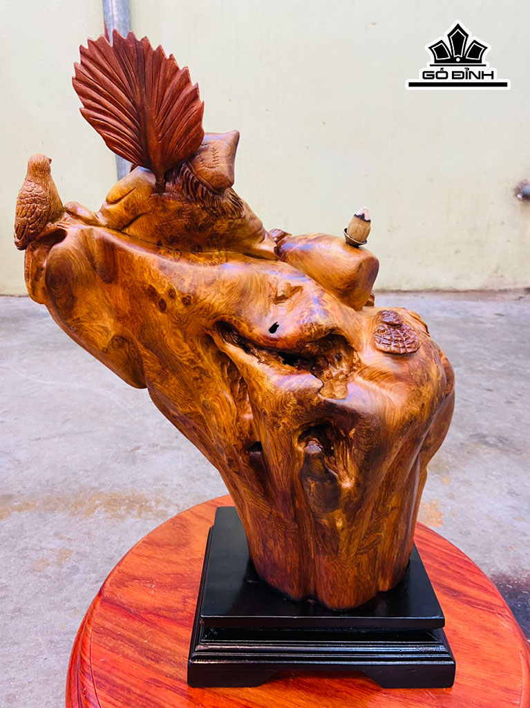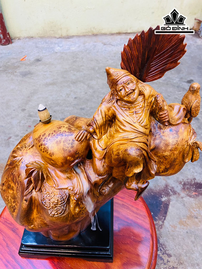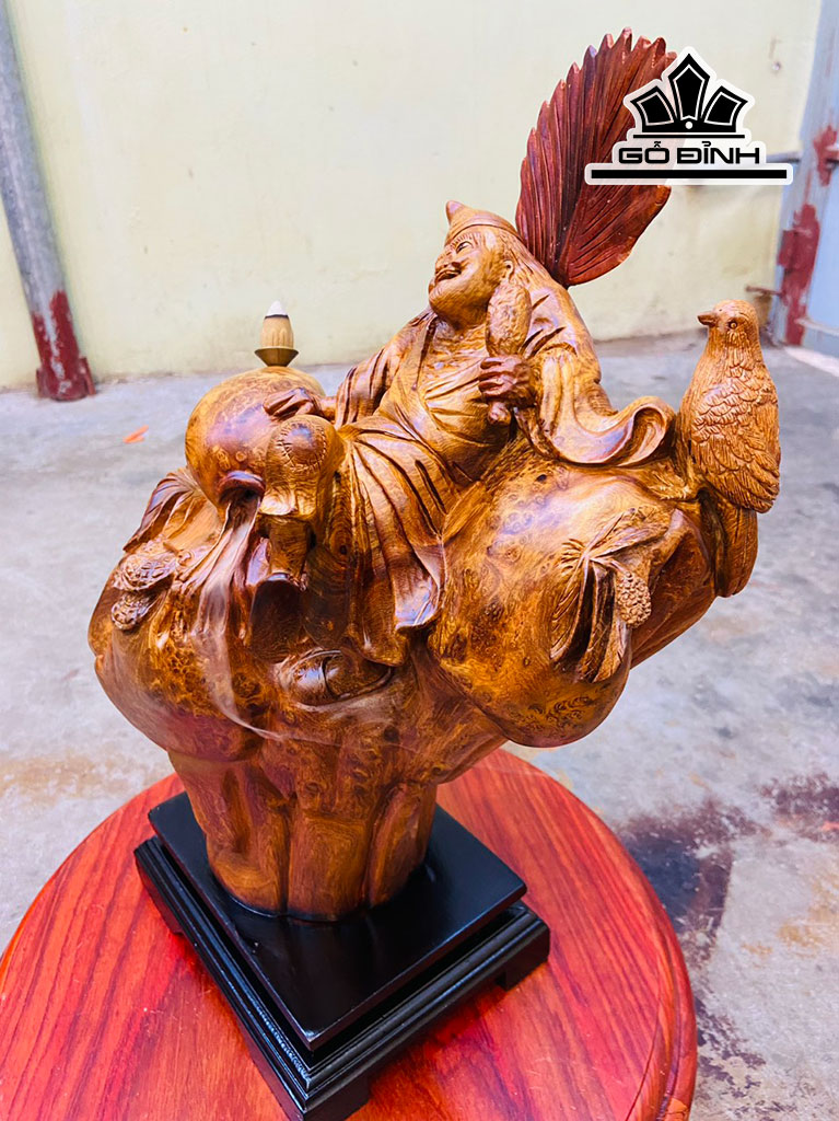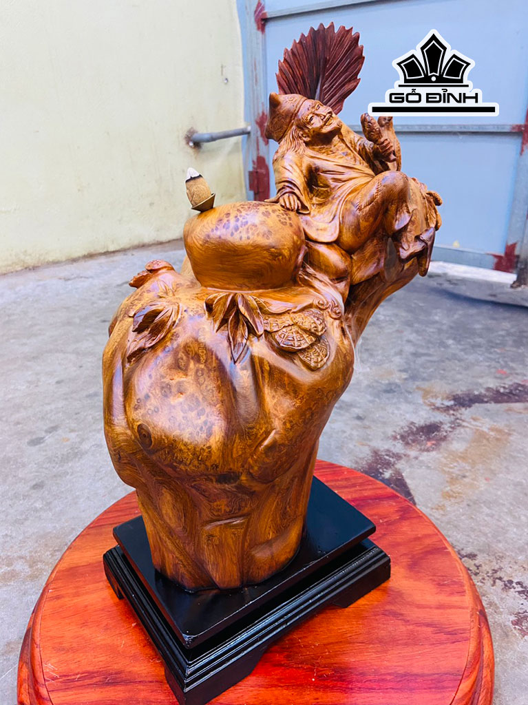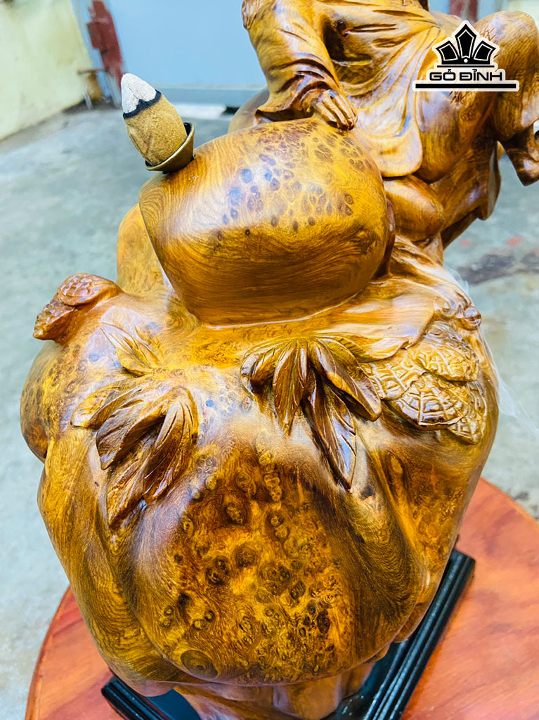 Tượng Tế Công Gỗ Nu Hương Cao 38 Ngang 36 Sâu 20 Cao Cả Kỷ 43 (cm)