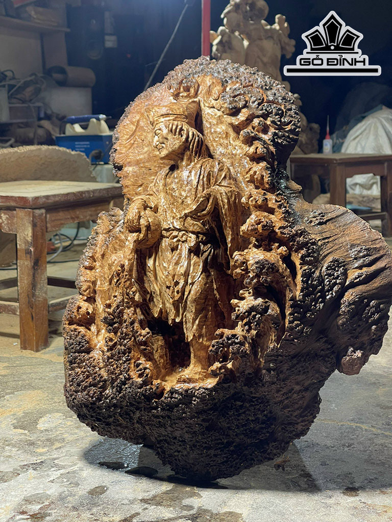 Tượng Tế Công Gỗ Nu Ngọc Am Cao 54 Ngang 43 Sâu 12 (cm)