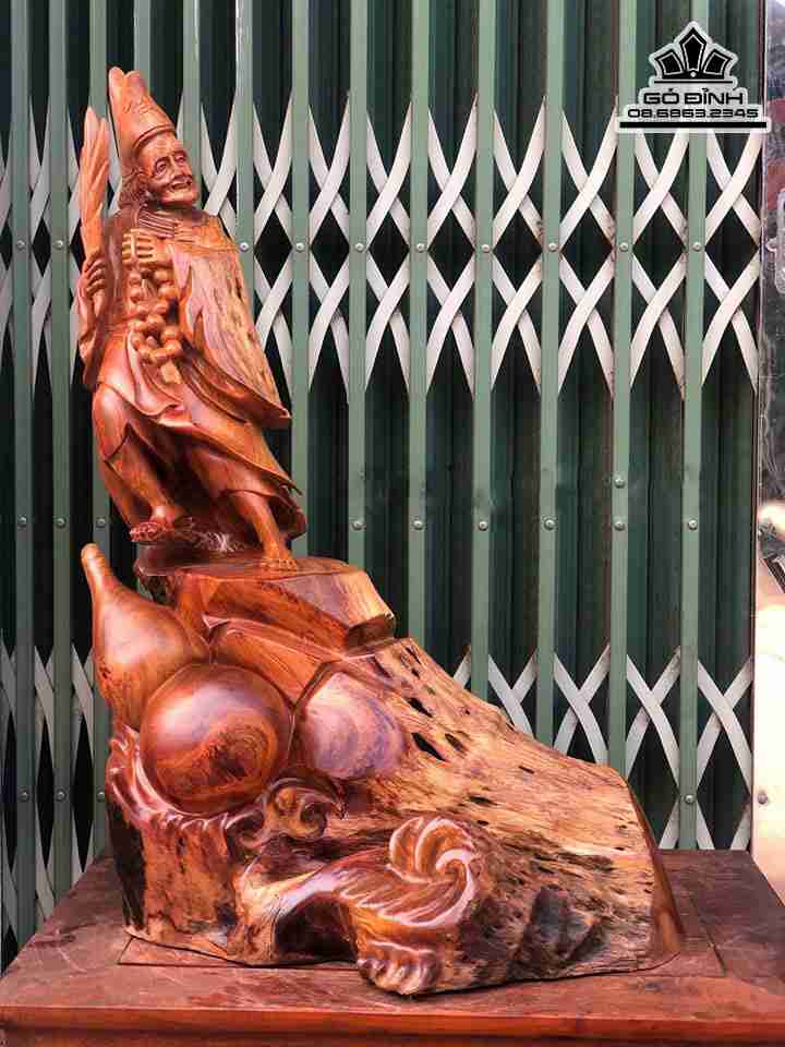 Tượng Tế Công Say Rượu Gỗ Hương Cao 80 Ngang 50 Sâu 25 (cm)