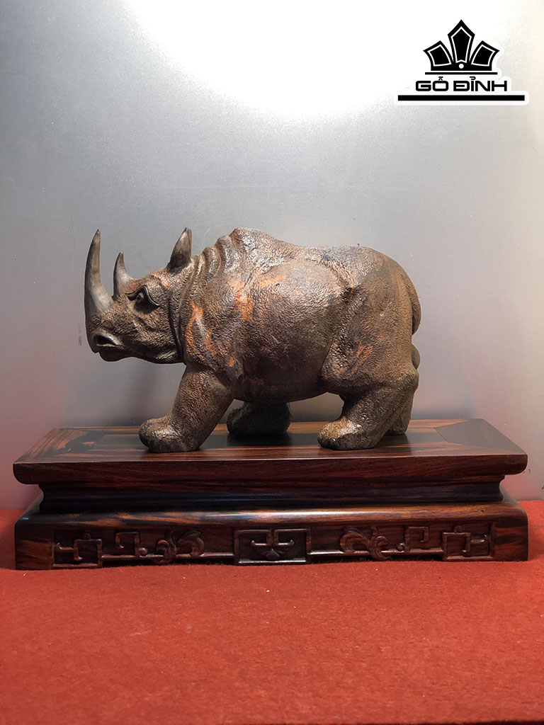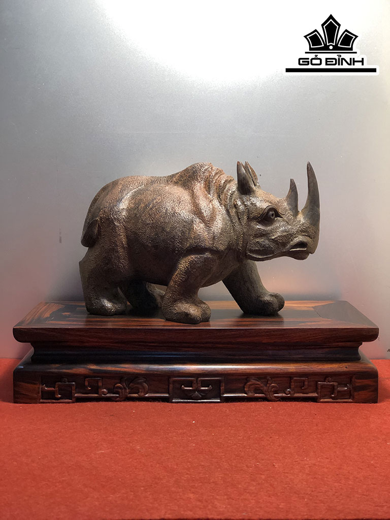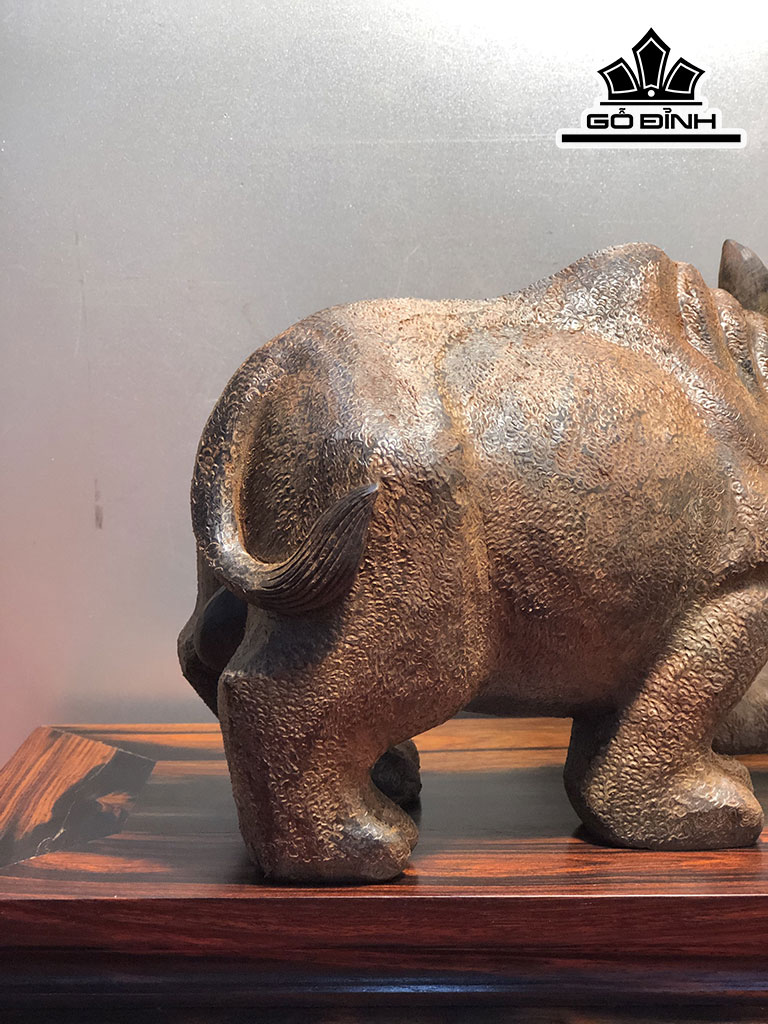 Tượng Tê Giác Gỗ Trắc Cao 14 Ngang 21 Sâu 10 (cm)