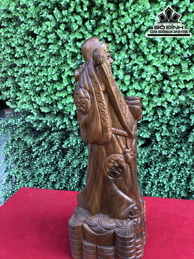 Tượng Thần Tài Gia Gia Gỗ Bách Xanh Cao 40 Ngang 13 Sâu 13 (cm)