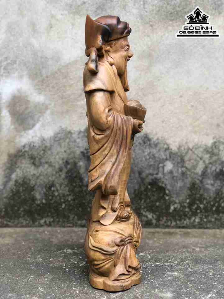Tượng Thần Tài Gỗ Bách Xanh Cao 40 Rộng 20 Dày 9 (cm)